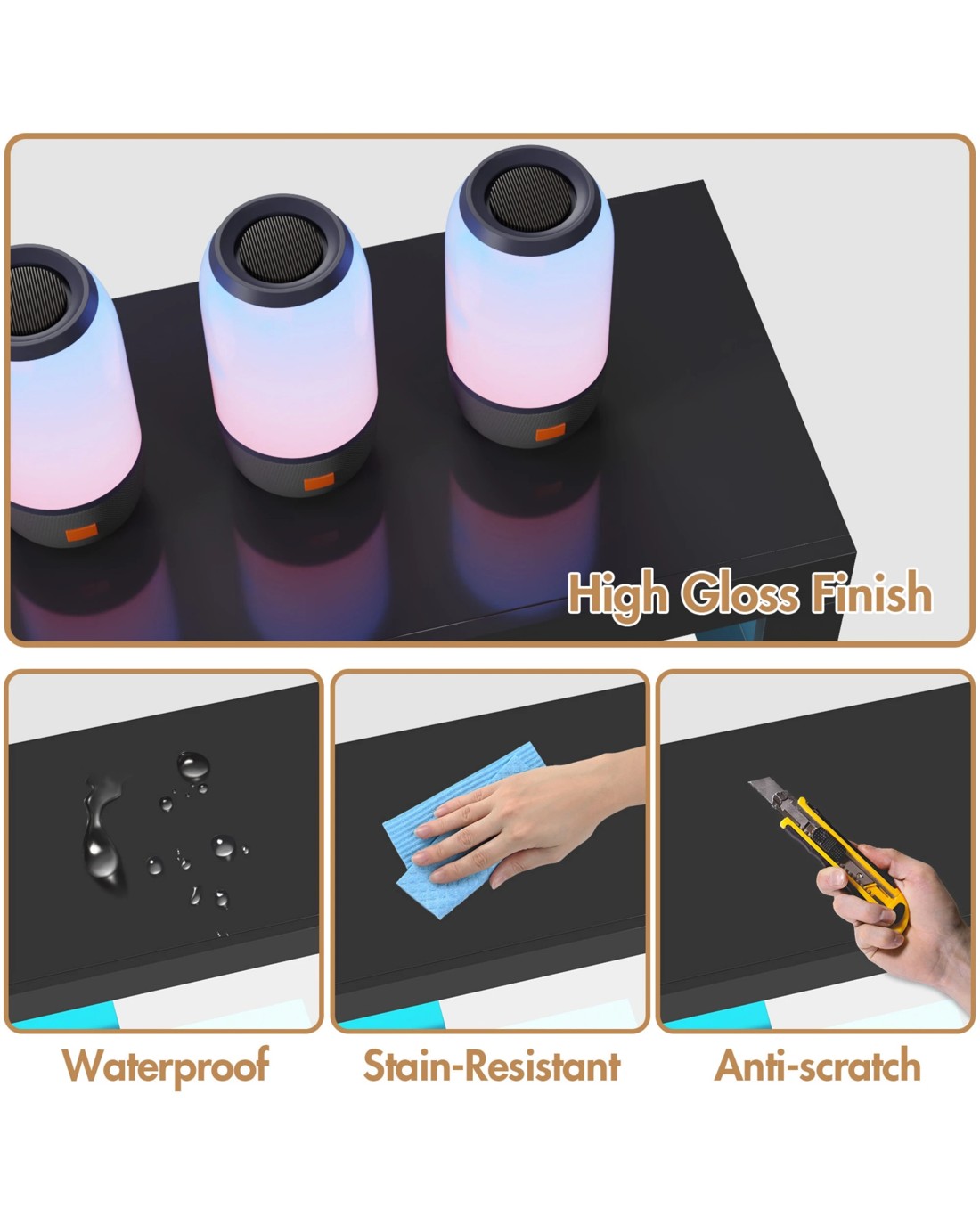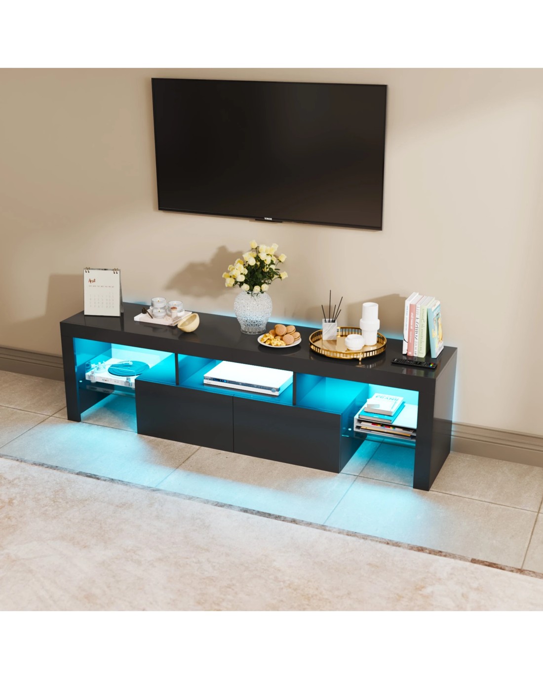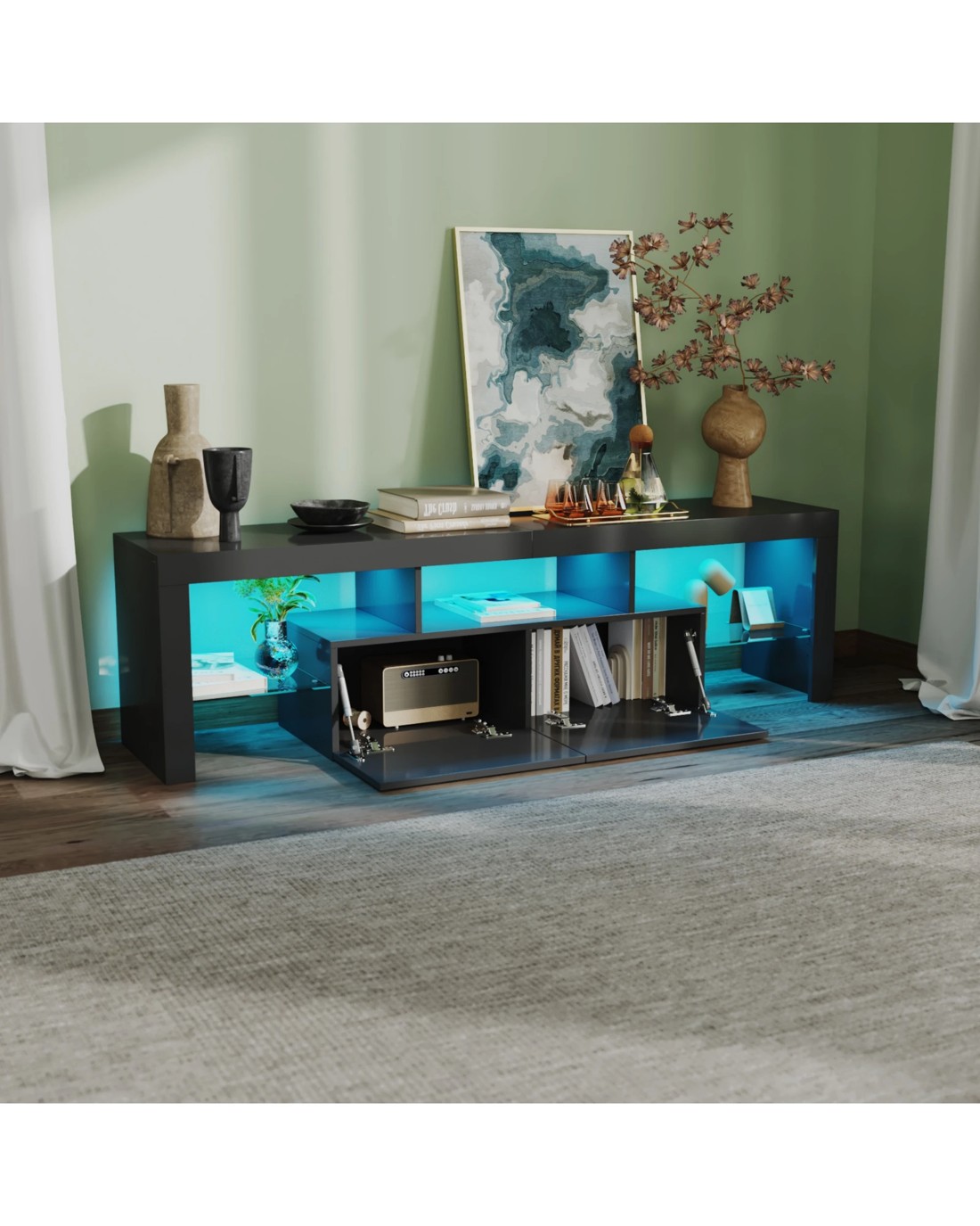 Sold by AdvwinAdvwin Tv Cabinet 160cm Rgb Led Entertainment Unit Stand Uv Gloss Modern Media Console Black