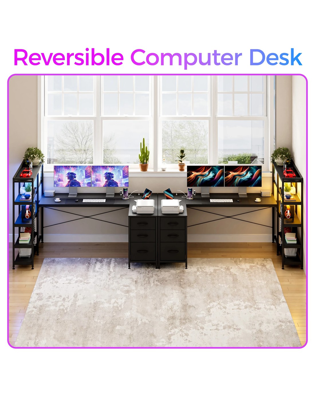 Sold by AdvwinAdvwin U Shaped Gaming Desk With Led Lights & Power Outlets Reversible 164cm Computer Desk With Bookshelf Black