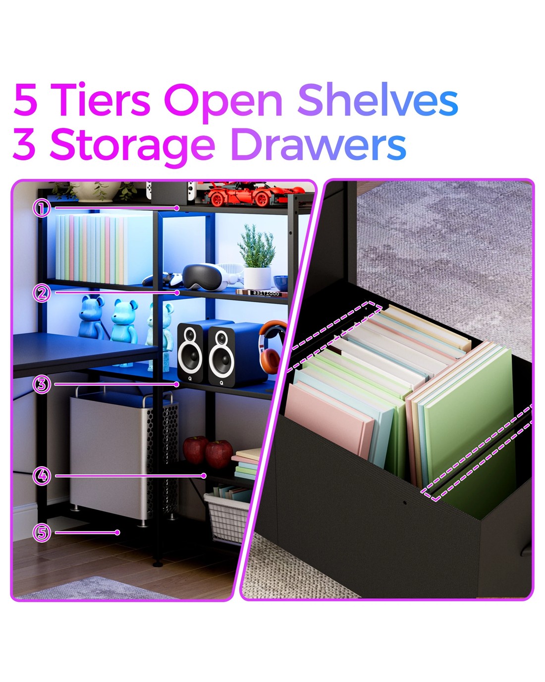 Advwin Gaming Desk integrated LED lights add an immersive ambiance, while the built-in power outlets, USB and Type-C ports ensure your devices are always charged and ready. As a practical home office Computer Desk, not only it can be a table, but also it can be an bookcase bookshelf, display shelf. Elevate your workspace or gaming setup with this all-in-one corner desk designed for both style and functionality.