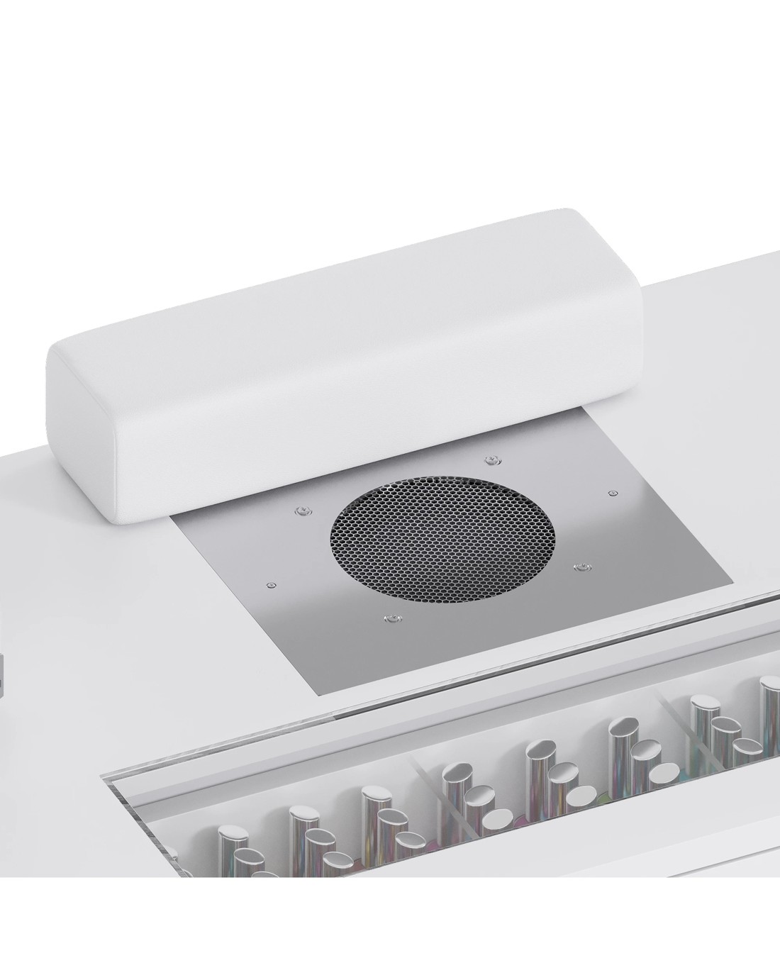 Sold by AdvwinAdvwin Vanity Nail Desk Manicure Table w/Glass Top Drawer Dust Collector Wireless Charging LED Light - White