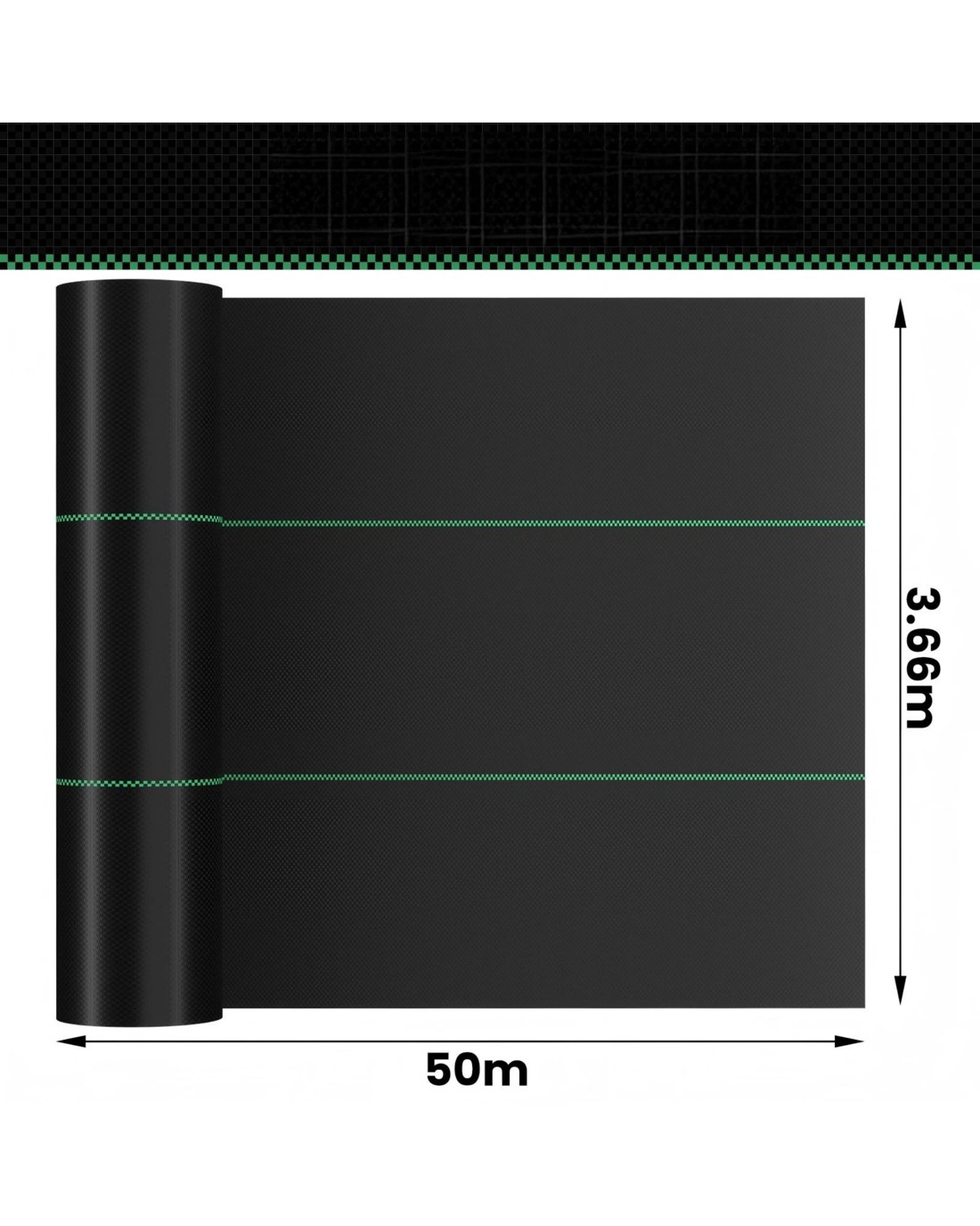 Advwin Weed Mat 3.66 x 50m Woven Ground Cover High Permeability & UV Resistant - Black