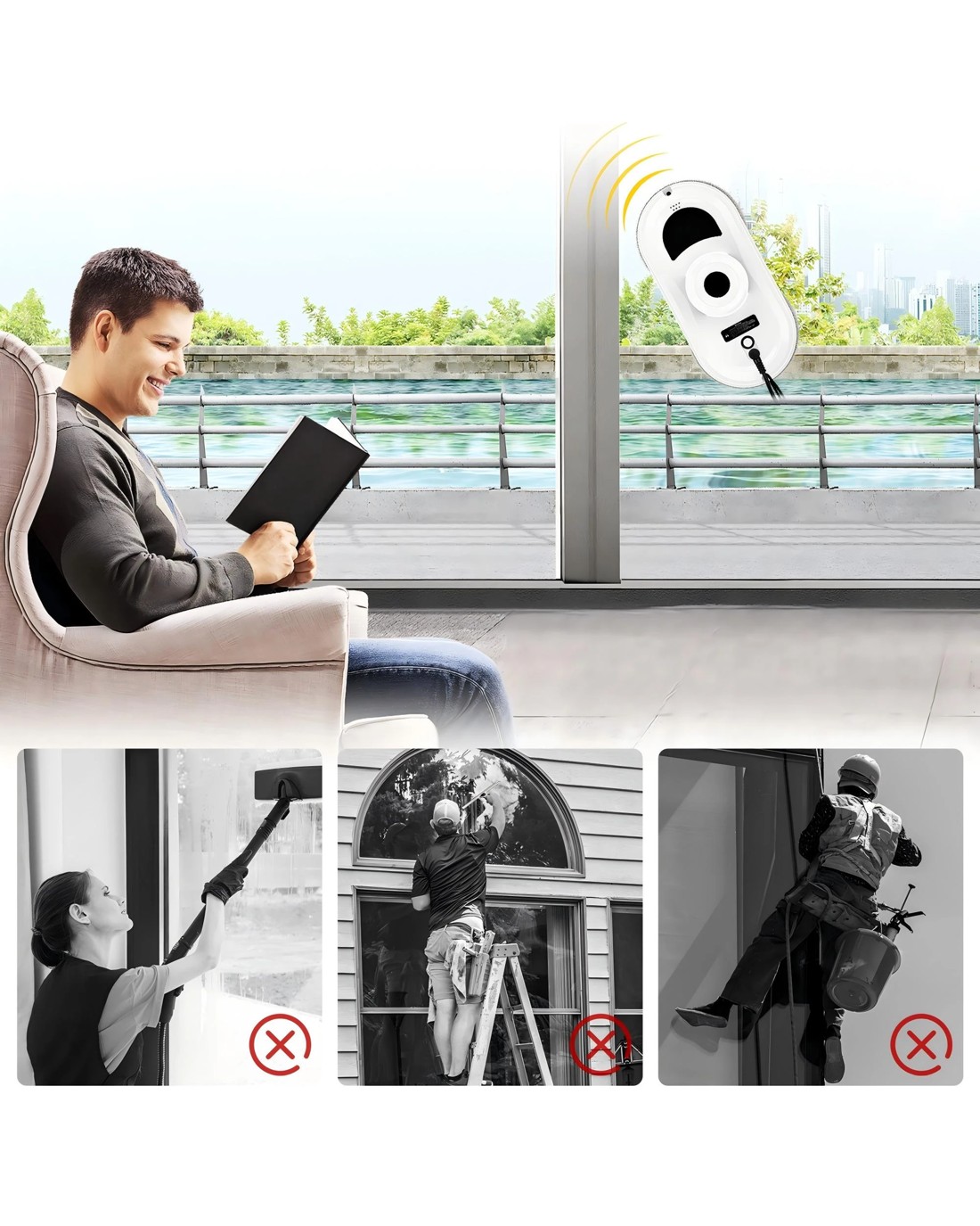 Embrace a new era of window cleaning with our Window Cleaner Robot, where innovation meets efficiency, providing you with more time to enjoy the clear, fresh views and the moments that matter. Say goodbye to the hassle of traditional cleaning methods and welcome the future of smart, automated window cleaning into your home or office.