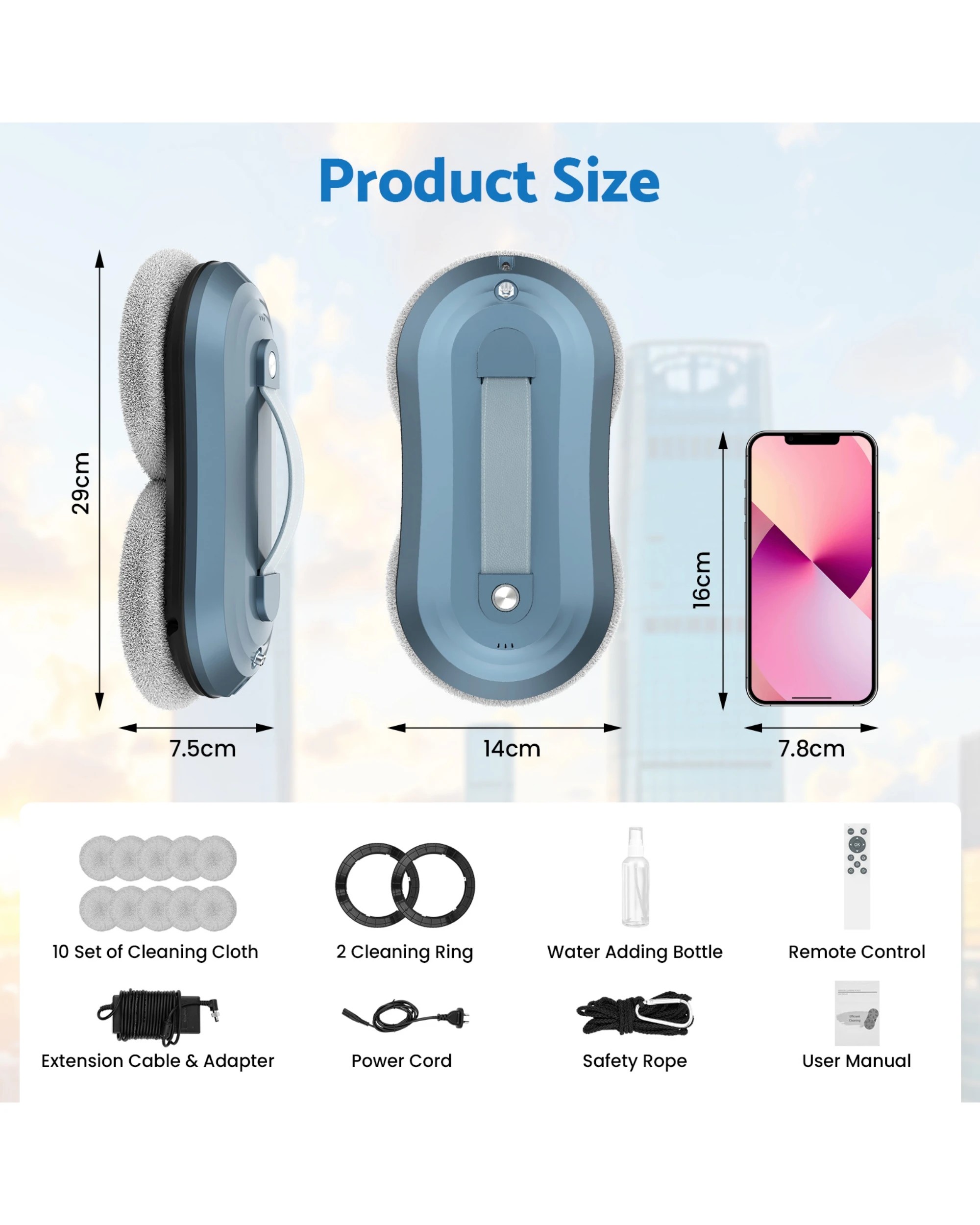Advwin Window Cleaner Robot, Automatic Robot Window Washer With Dual Water Spray Technology, 2800pa Suction