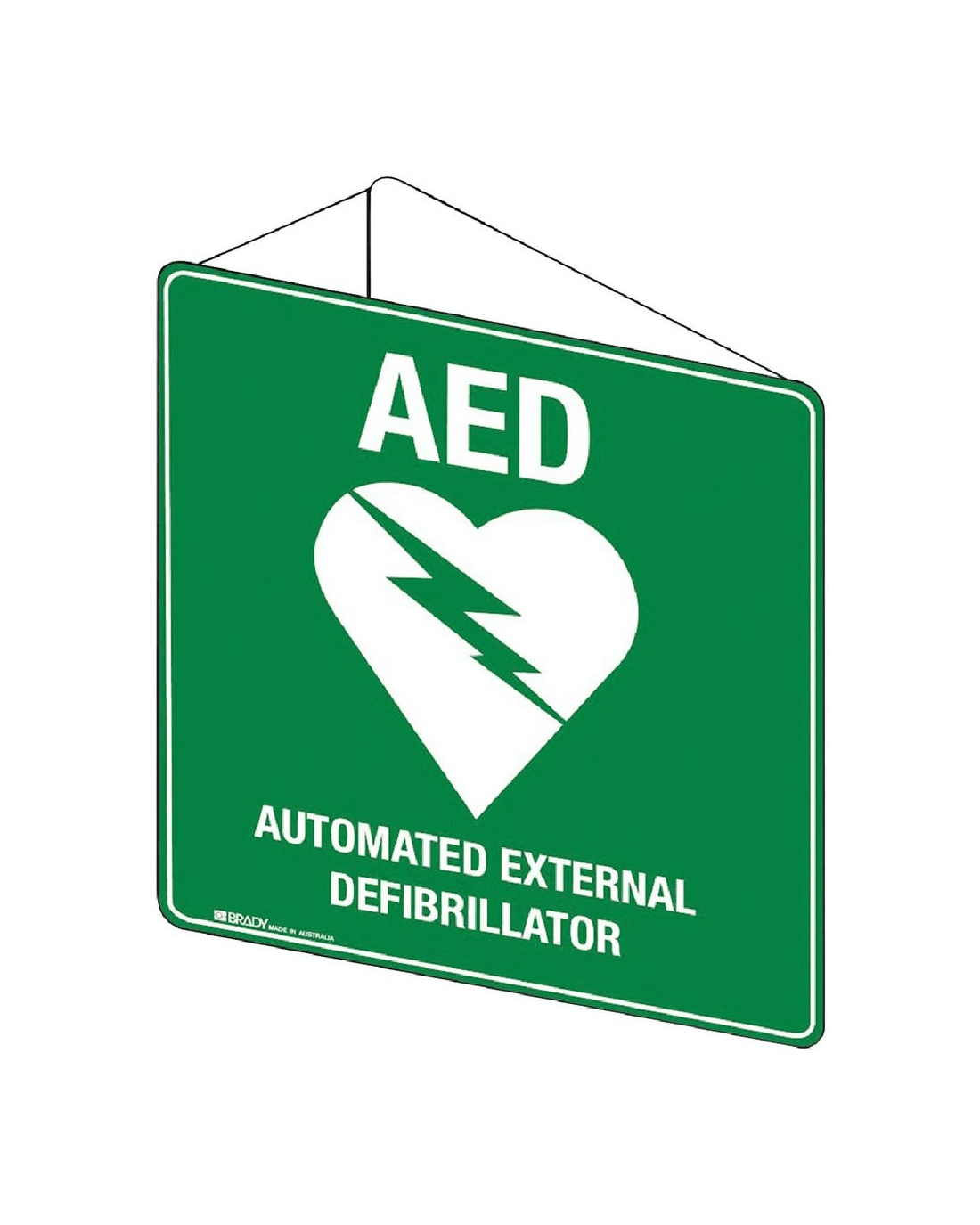 - Use this sign to mark the location of your workplace’s Automated External Defibrillator.