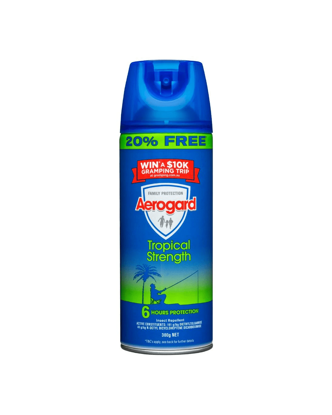 Aerogard Aerosol Tropical Strength is specially formulated to provide up to 6 hour protection against mosquitoes, flies, sandflies, leeches, ticks and other biting insects. The aerosol can is easy to apply so you can be protected during your outdoor adventures.