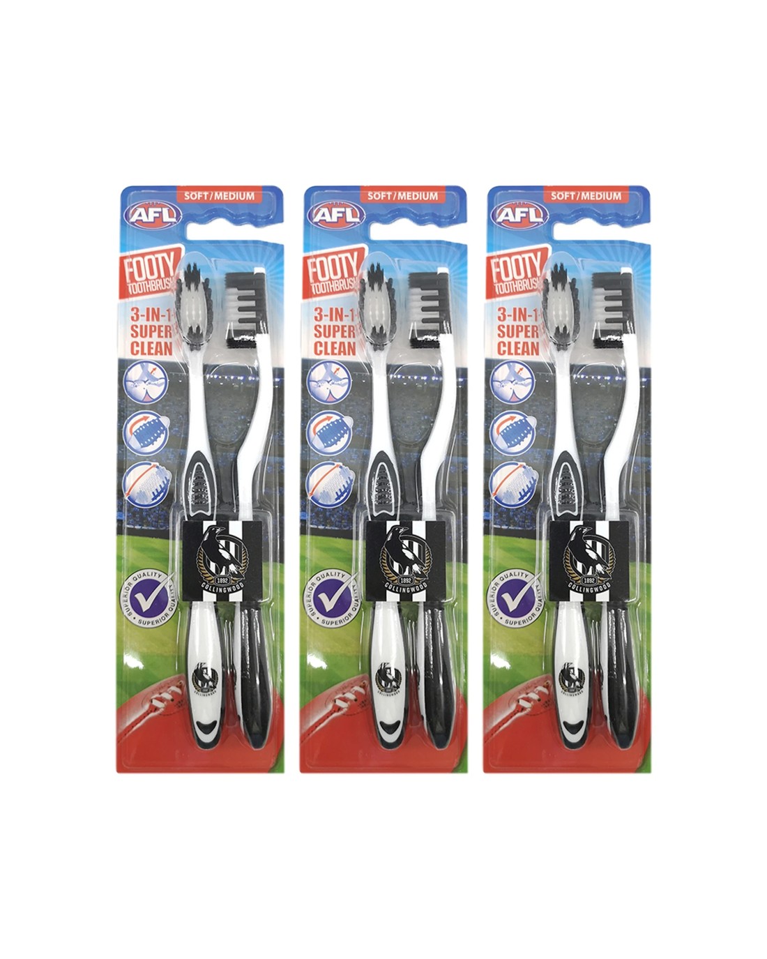 Sold by KG SuperStoreAFL 3x 2pc Soft/Medium Toothbrush Oral Care Collingwood Magpies Kids/Adults - Multi