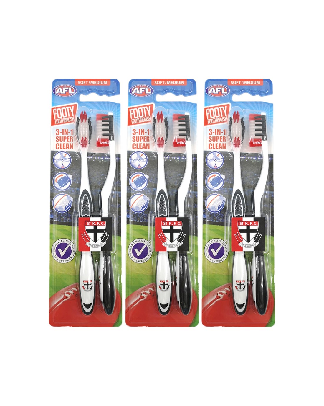 Sold by KG SuperStoreAFL 3x 2pc Soft/Medium Toothbrush Oral Care St Kilda Saints Kids/Adults - Multi