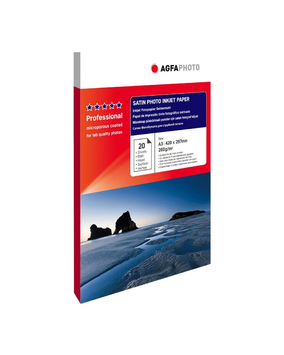 This pack of AGFA Photo Paper is suitable for photographic as well as graphic artworks and prints clearly via Inkjet printers for professional looking images. This pack comes with twenty A3 sized sheets that have a satin finish.