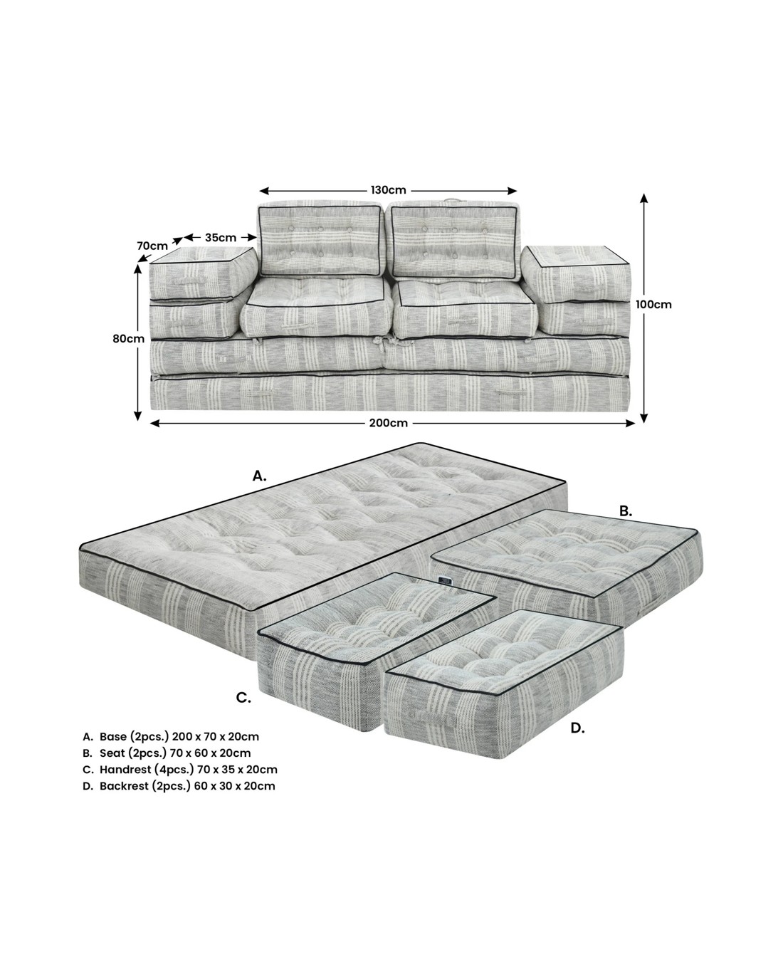 Great for small rooms and limited spaces, this modular couch is the modern comfort you need! Crafted with machine-woven cotton and polyester, it features stackable cushions for endless customisation. From a cosy lounge to a spacious sofa, it adapts to your needs with style.