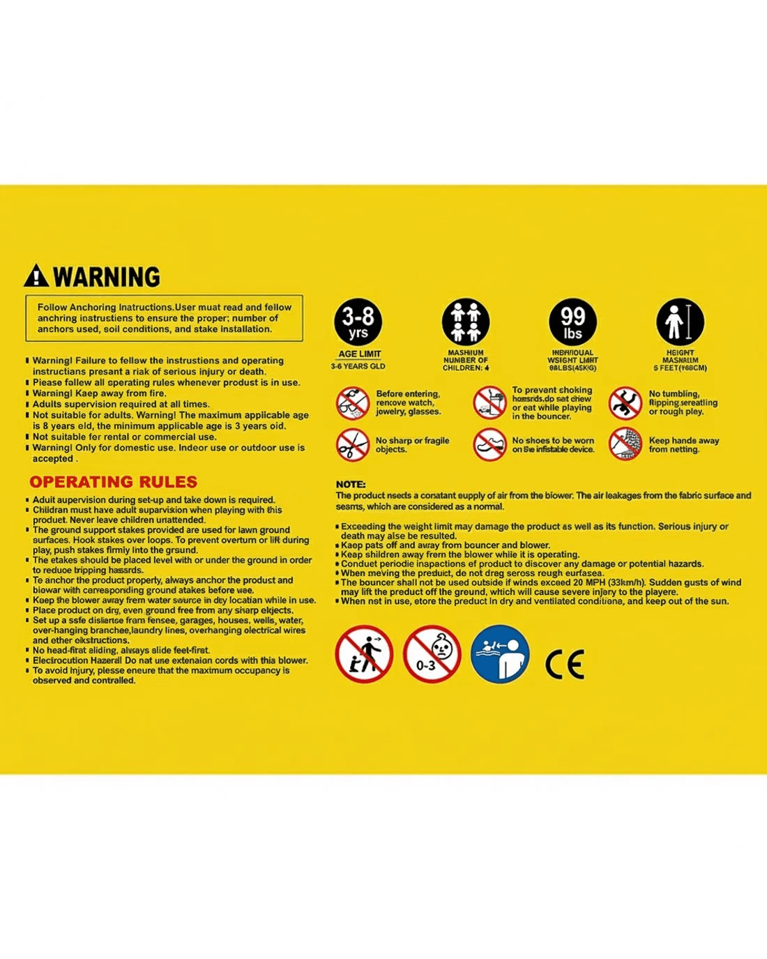 2. Do not set up in windy or rainy conditions: sudden gusts of wind may lift the product off the ground.