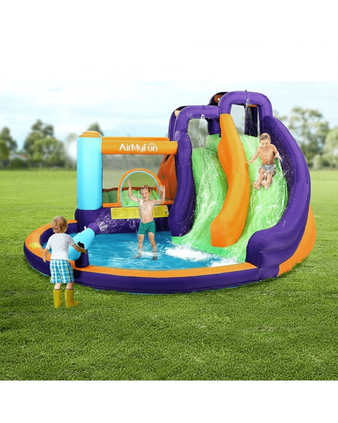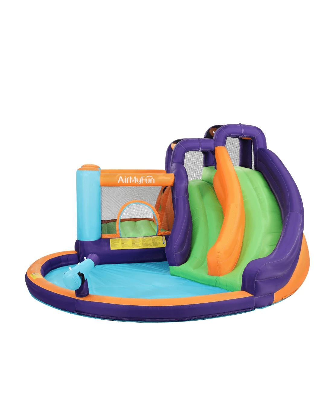 Dive into a realm of sunlit amusement with AirMyFun Inflatable Water Park! Transform your outdoor space into an island oasis filled with joyous slides and splashes. Bursting with color, excitement, and energy, this water park offers a harmonious mix of exhilarating slides and cool splash areas. Witness the glistening sun and shimmering water as your youngsters engage in captivating aquatic adventures. Let the sunny days and playful sprays create stories of unmatched summer joy!