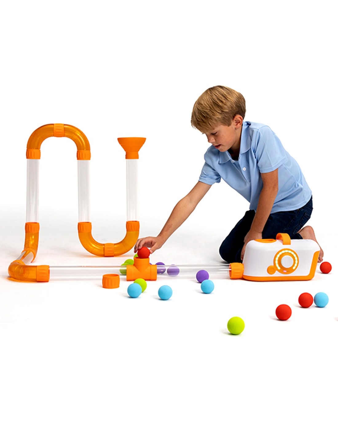 With a variety of modular transparent tubes, connectors, and accessories, children can build endless configurations, creating loops, swirls, and intricate pathways. The included foam balls can be launched and observed as they leap through the network of tubes, hover in mid-air, or cycle around in exciting patterns.