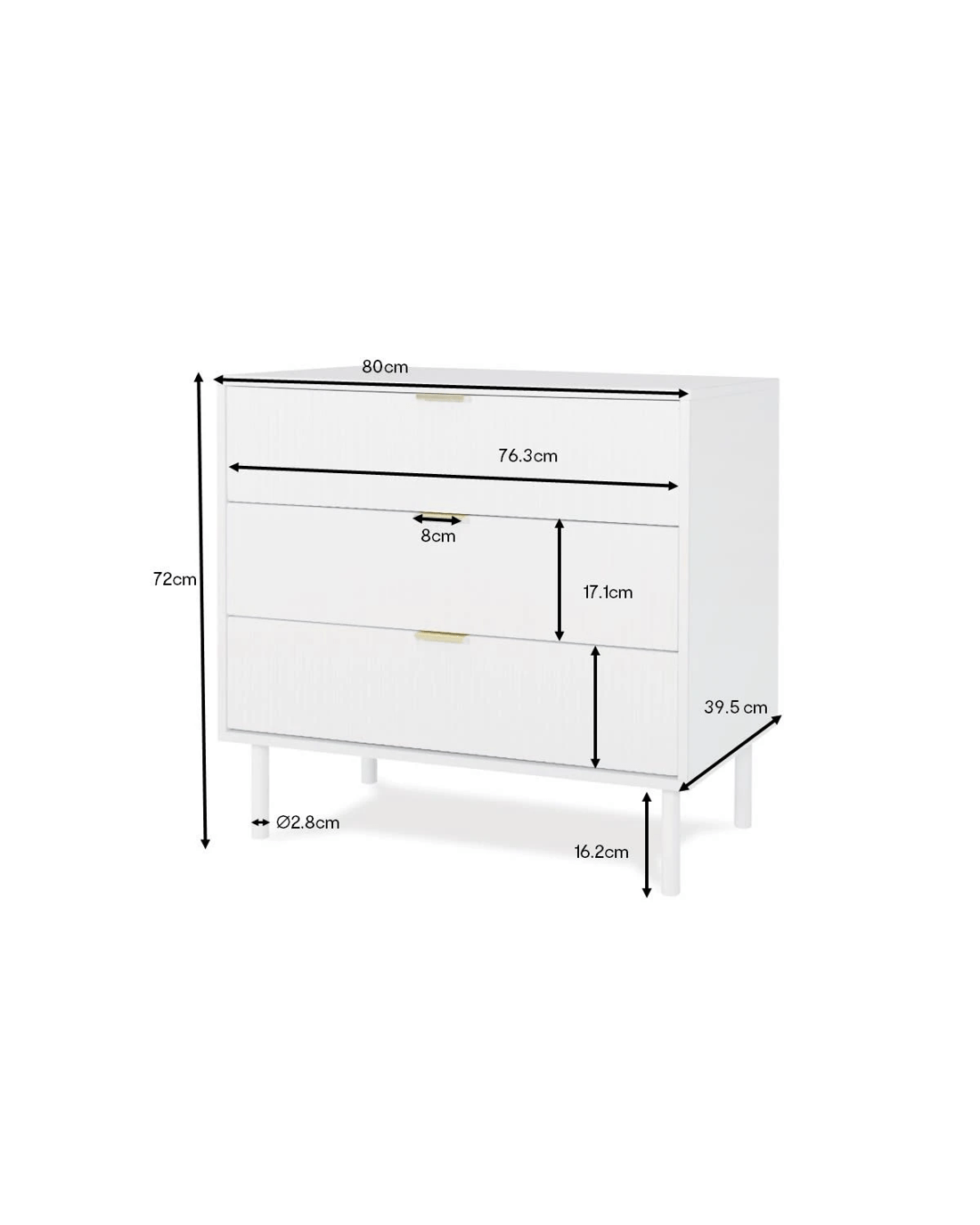 Alfie 3 Drawer Unit Specifications
