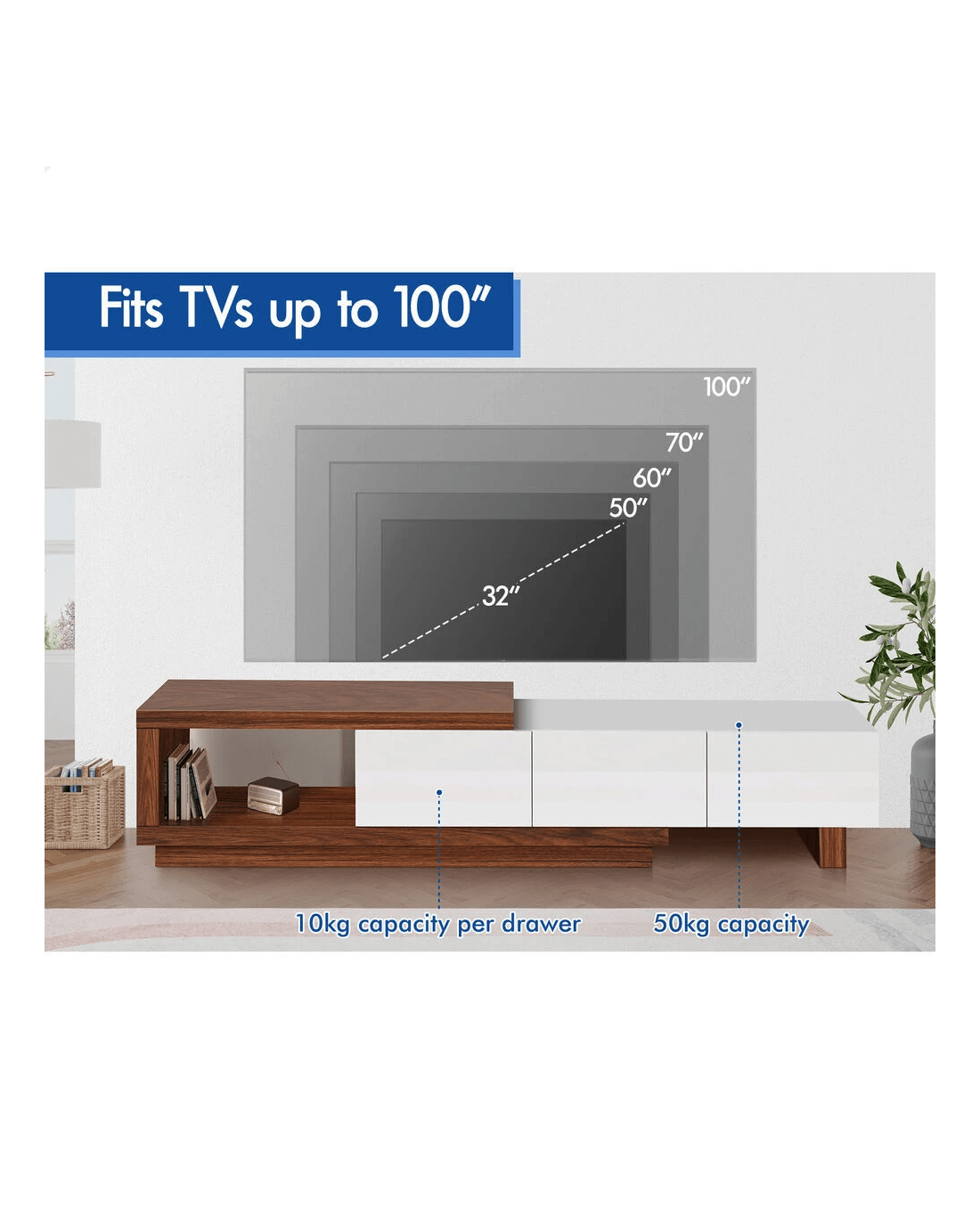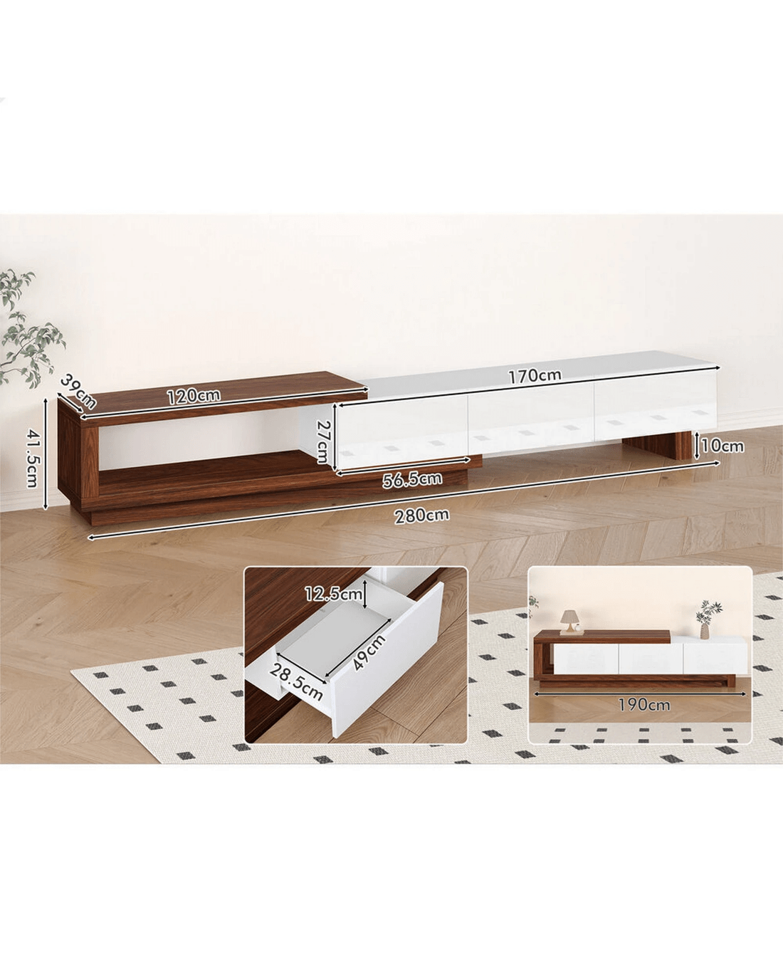 Sold by Aussie Union GroupAlfordson 190-280cm Extendable Entertainment Unit TV Stand Cabinet Drawer - Walnut White