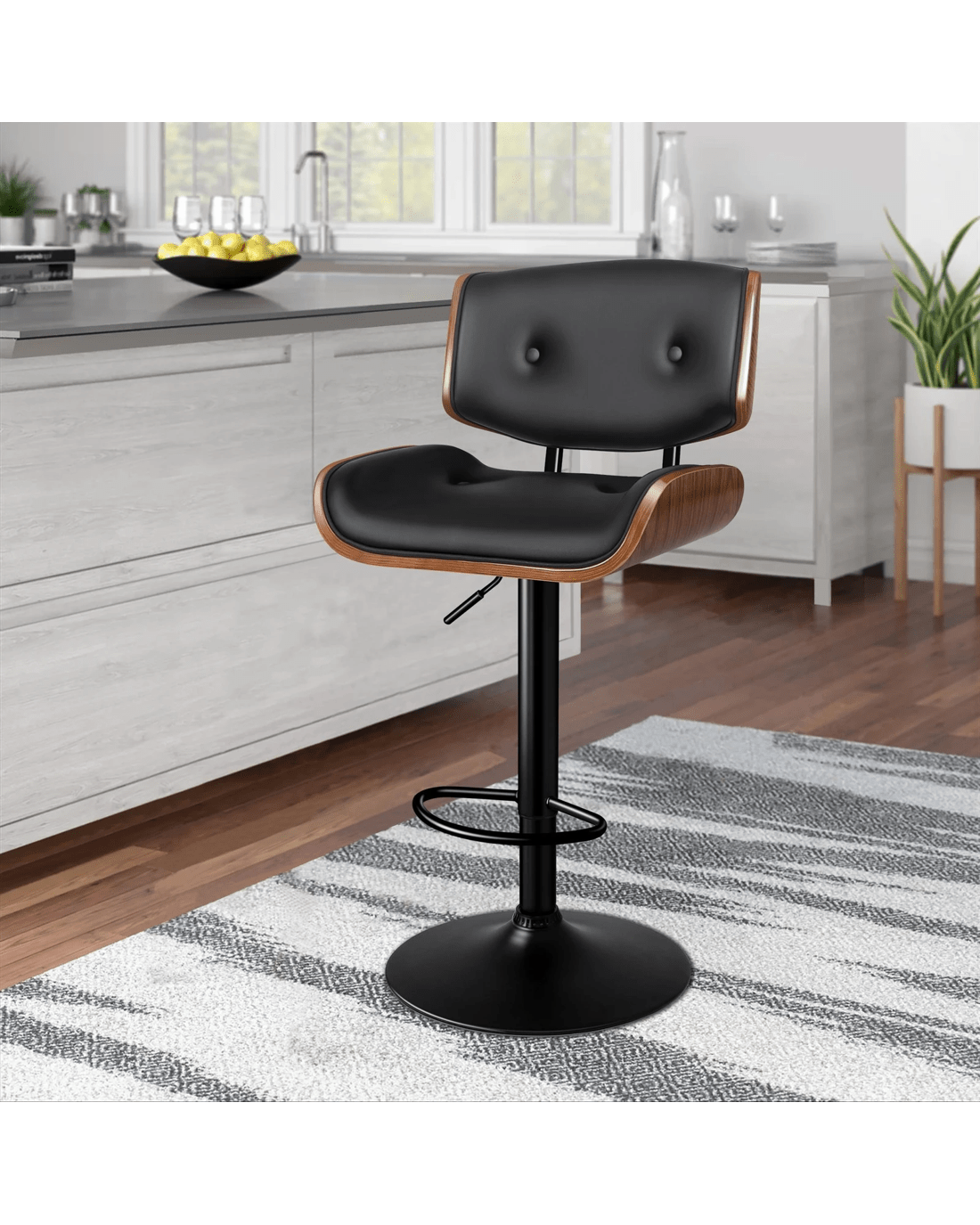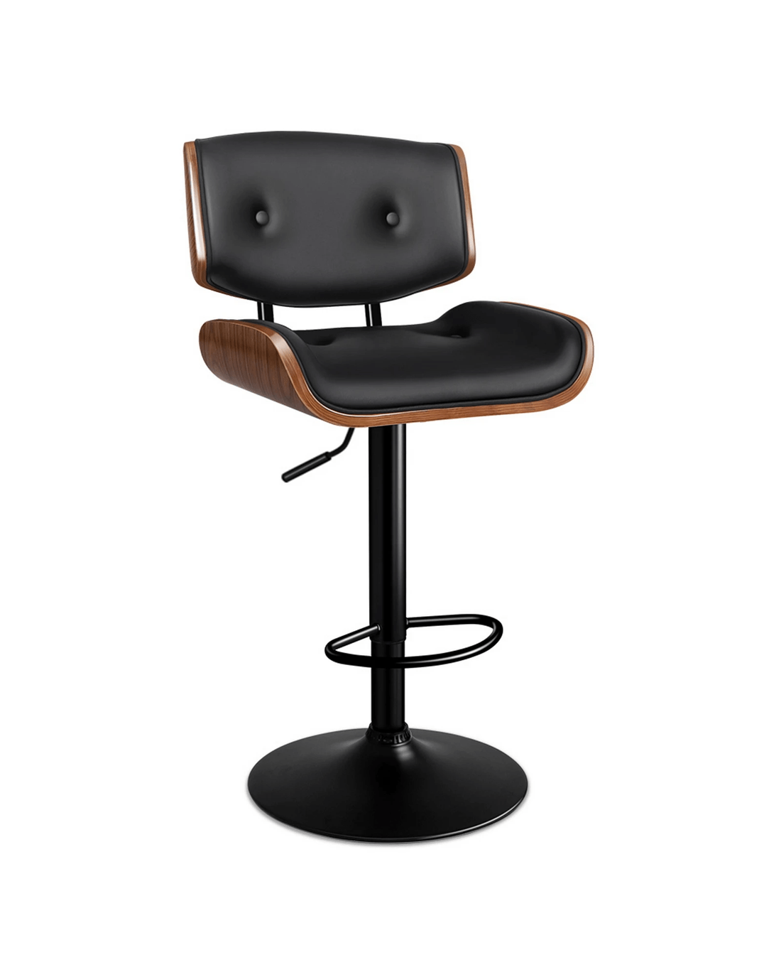 Alfordson 1x Bar Stool Kitchen Swivel Chair Wooden Leather Gas Lift - Black