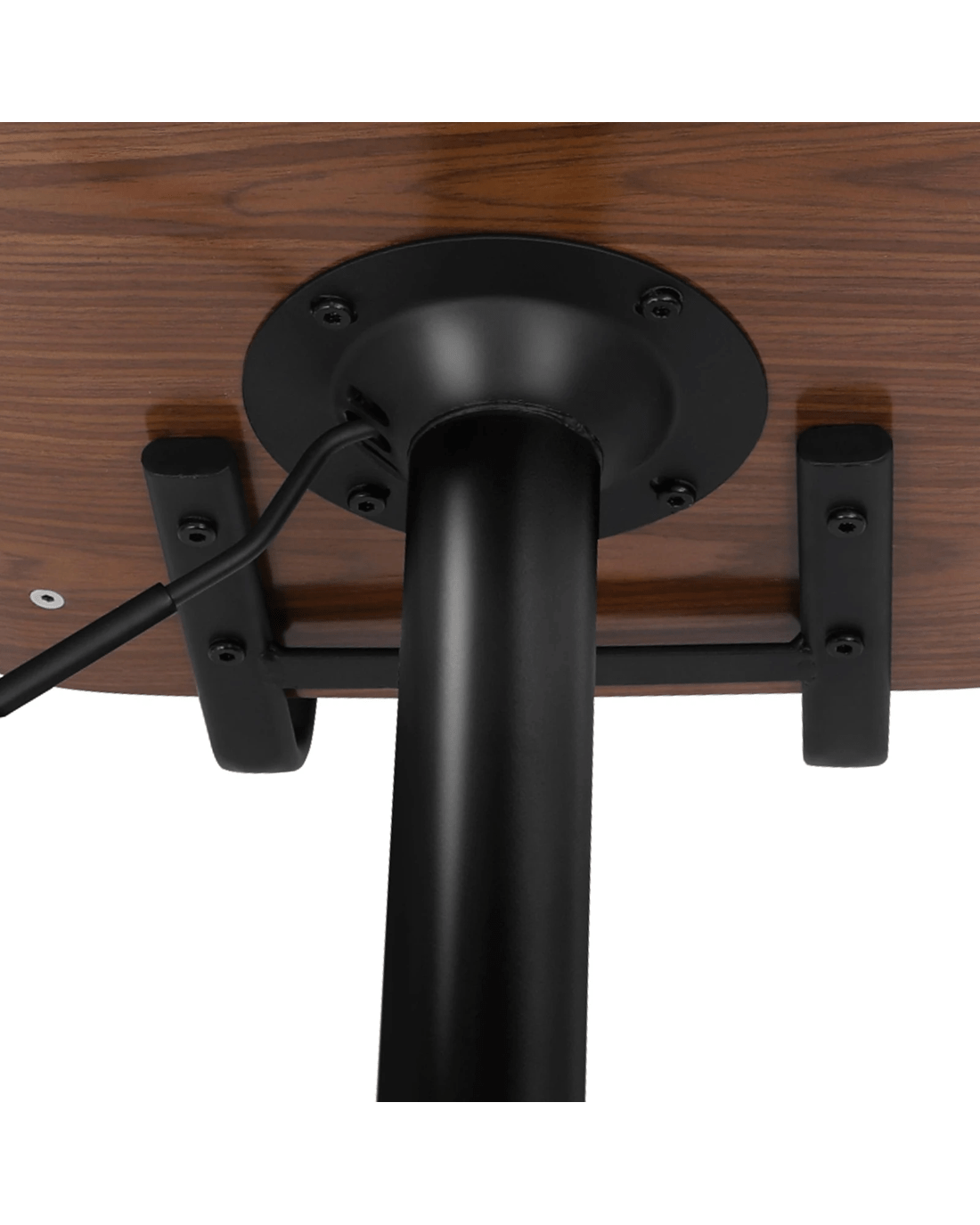 * Finish: Delicate wood grain (seat) and black powder coated chrome (base)