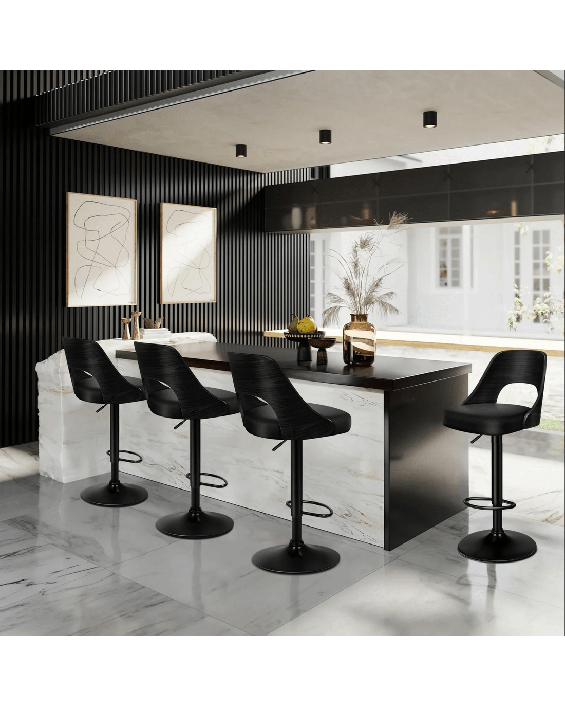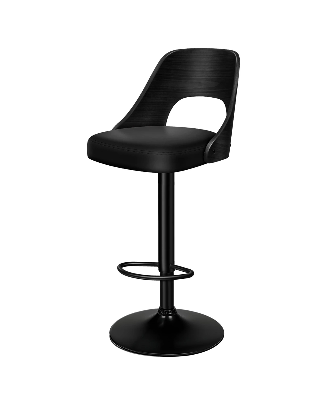 Alfordson 1x Bar Stool Kitchen Swivel Chair Wooden Leather Gas Lift - Black