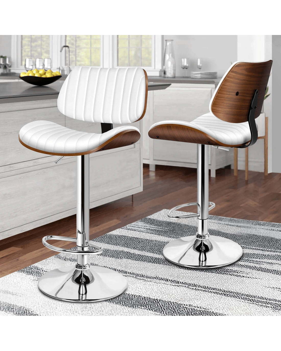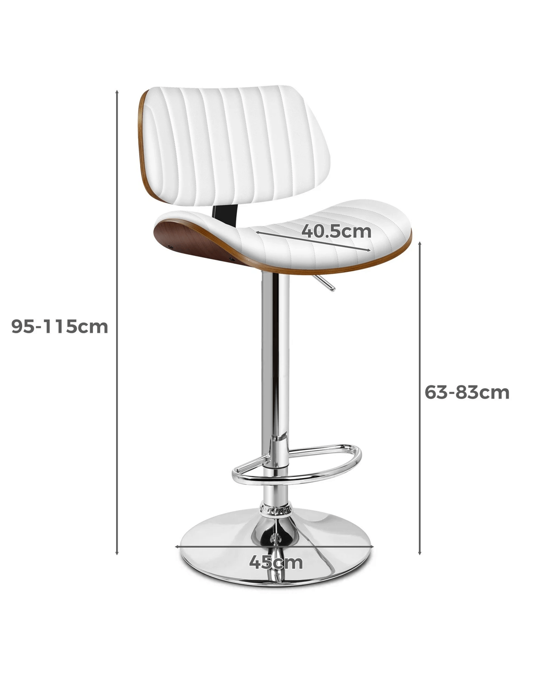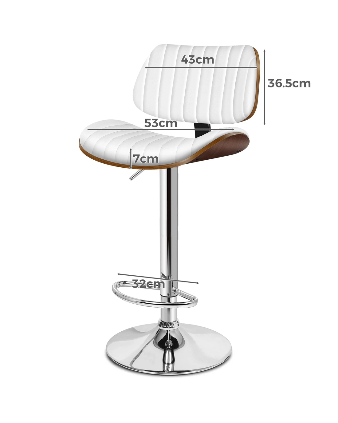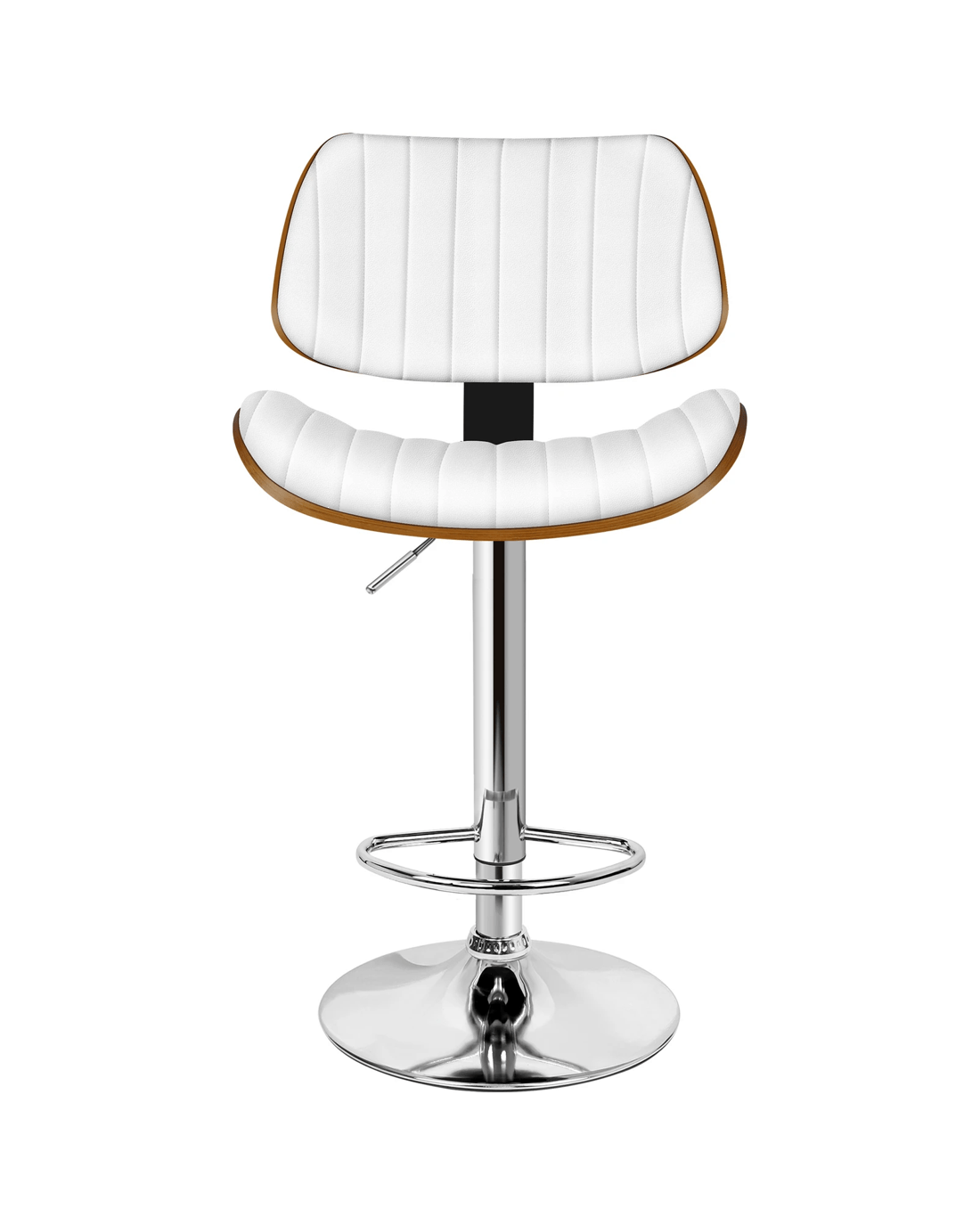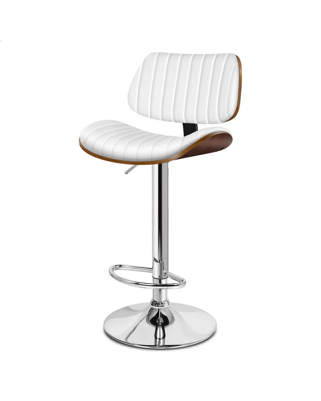 Alfordson 1x Bar Stool Kitchen Swivel Chair Wooden Leather Gas Lift - White