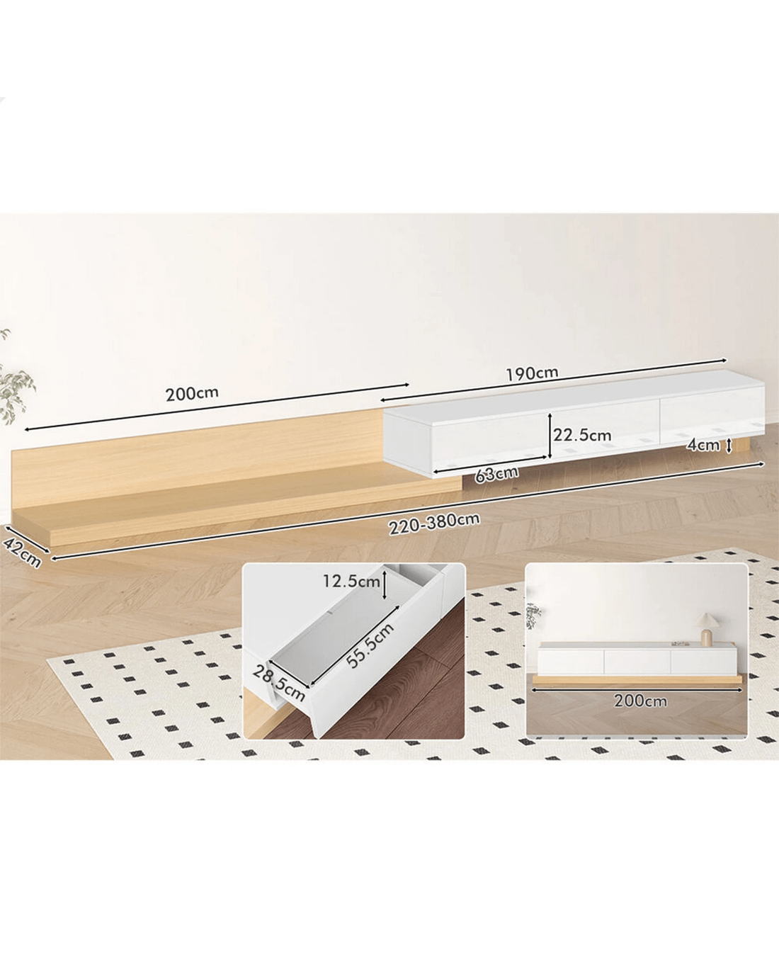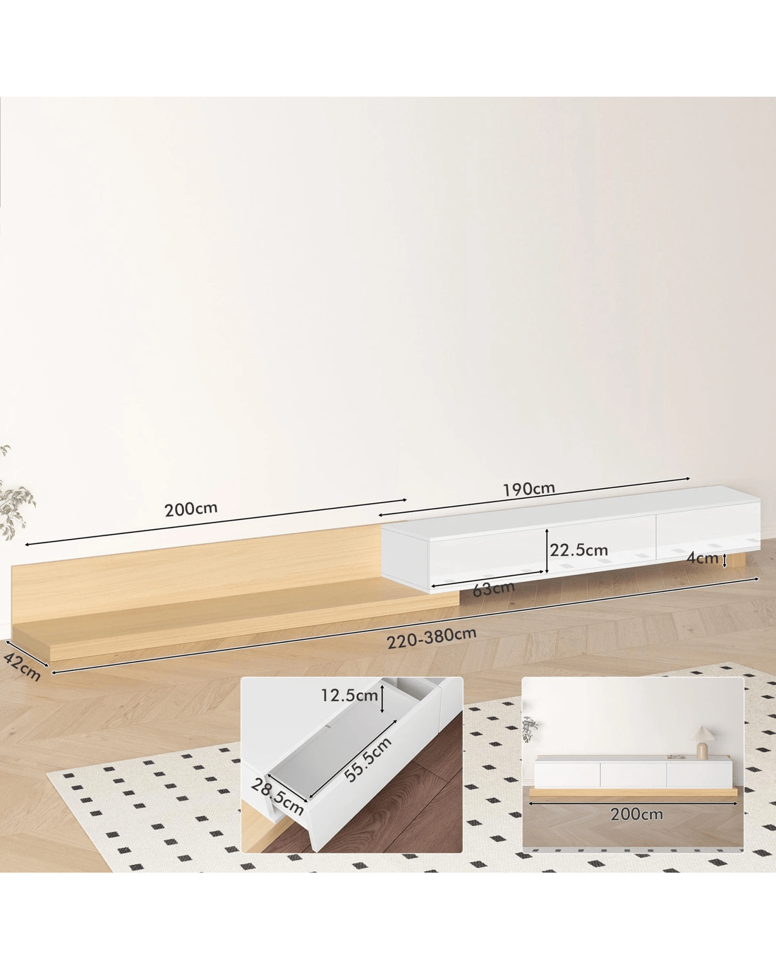 Alfordson 200-380cm Extendable Entertainment Unit TV Cabinet Stand Storage Shelf - Wood White