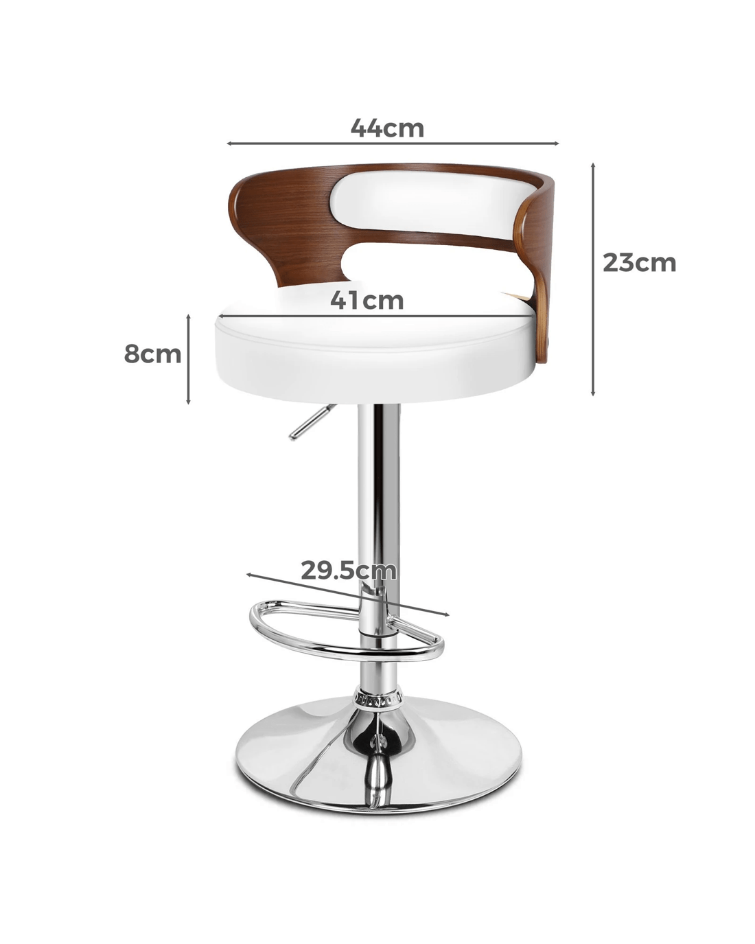 * Finish: Delicate wood grain (seat) and glossy chrome (base)