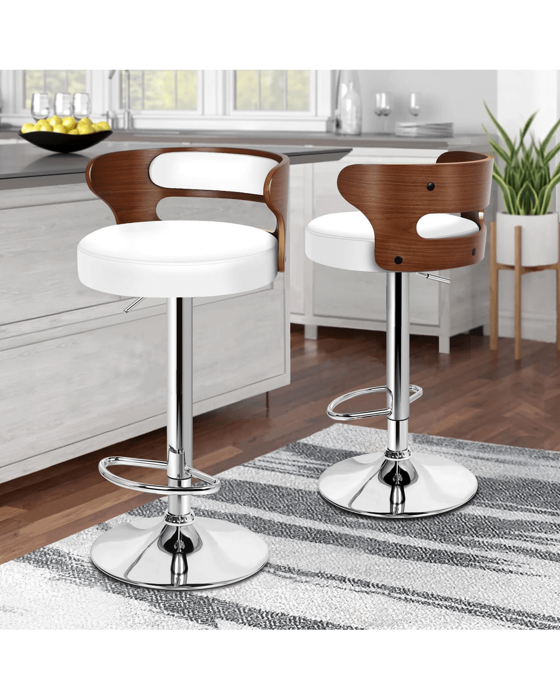 Sold by Aussie Union GroupAlfordson 2x Bar Stool Kitchen Swivel Chair Wooden Leather Ramiro - White