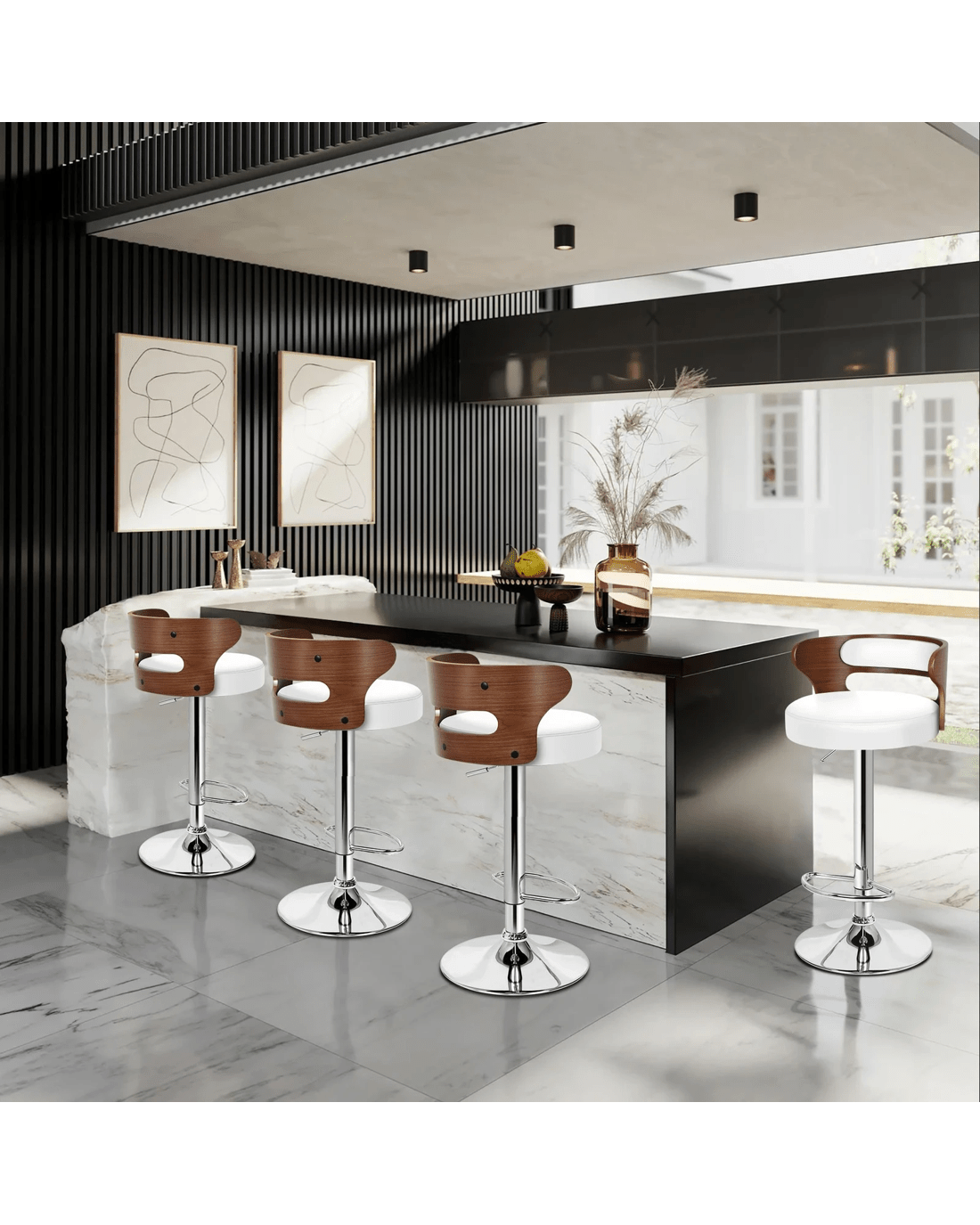As always, we have no compromise on materials Use - ameter of the base is increased, resulting in larger supporting area, so the seat becomes more secure and stable with long-lasting durability. Better still, the shiny chrome base and footrest complement the stool's modern design. A rubber floor protector ring, embedded in the case, reduces noise and protects your floor by sliding smoothly when you need to move the stool.