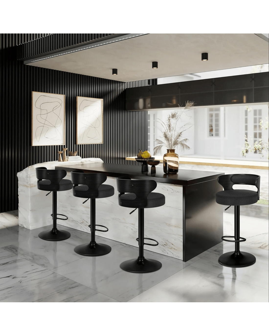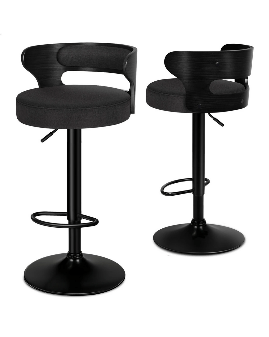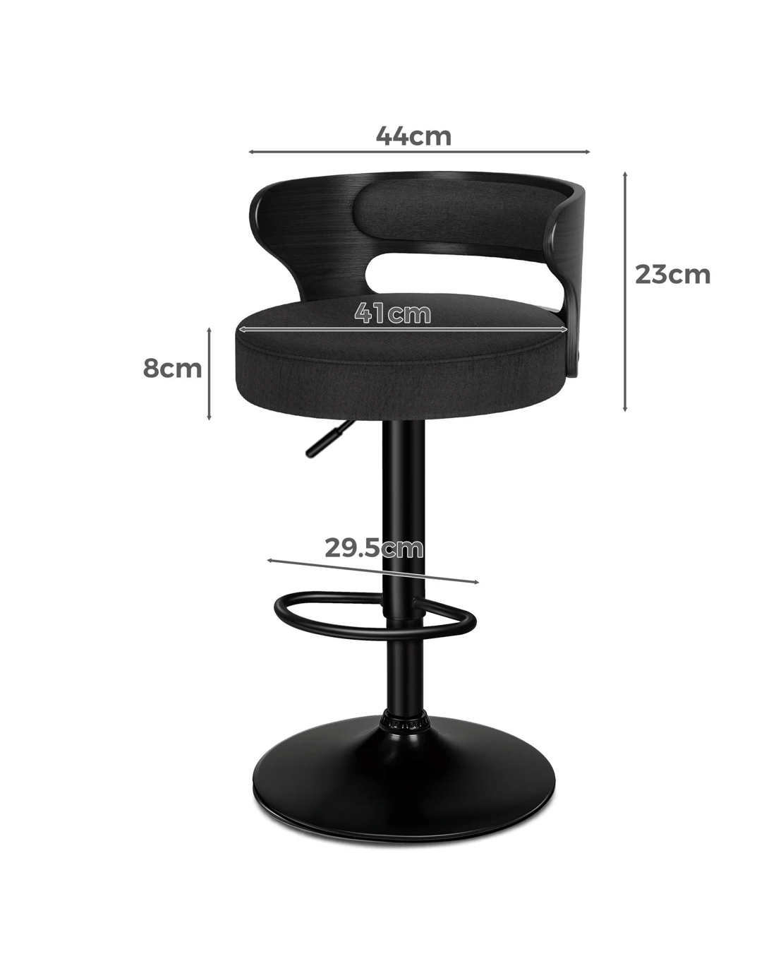 Alfordson 2x Bar Stool Kitchen Swivel Chair Wooden Linen Fabric Ramiro - Black