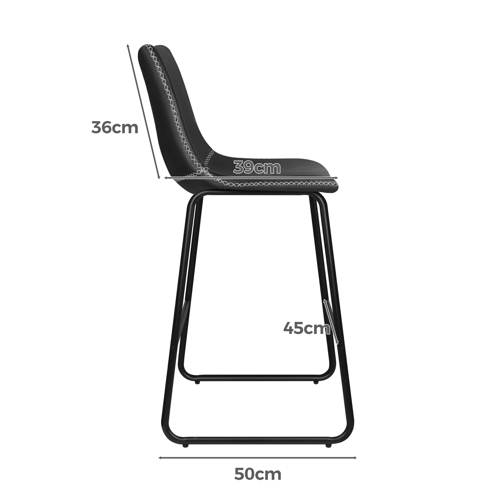 Alfordson 2x Bar Stools 66cm Kitchen Counter Metal Vintage Dining Chairs - Black