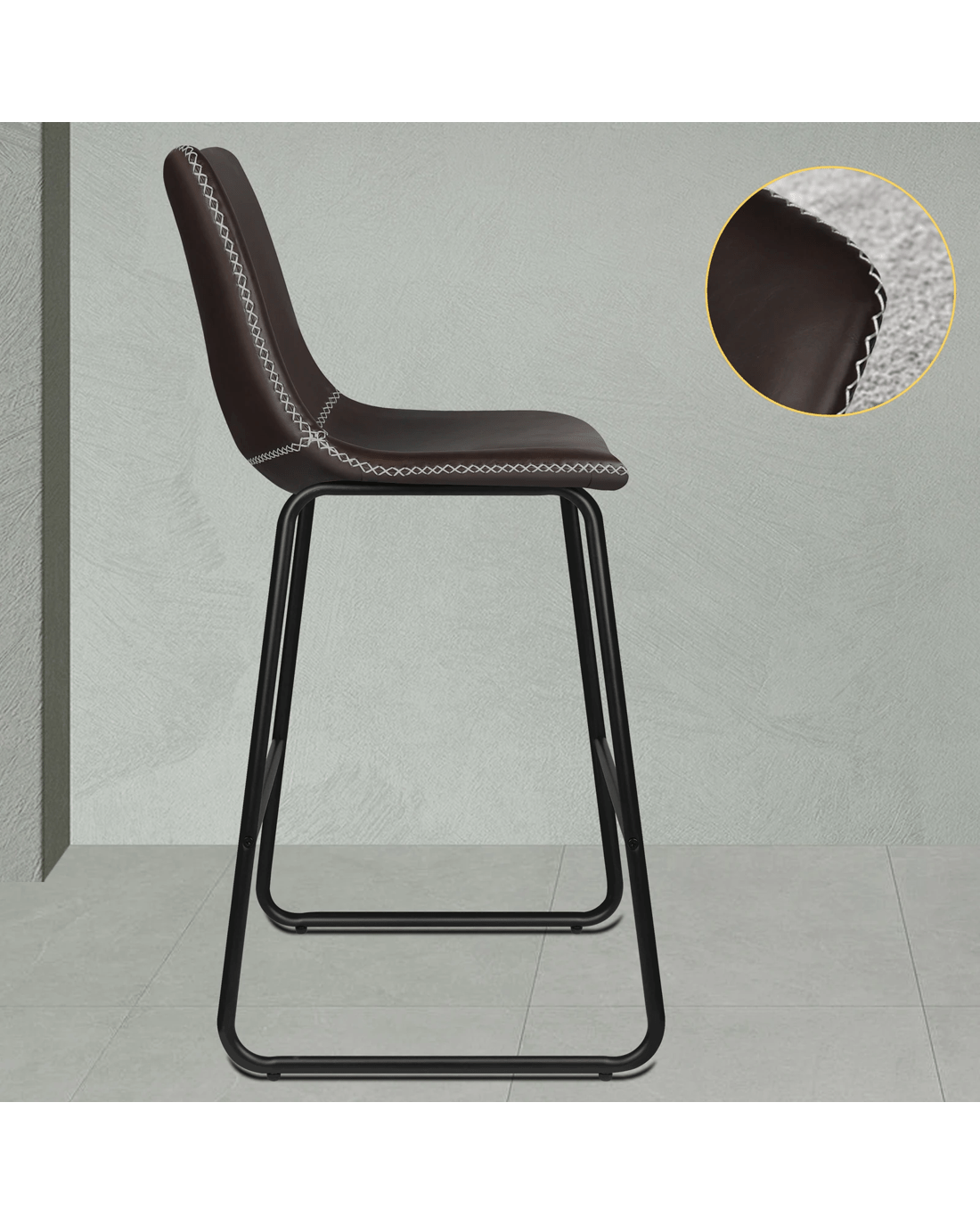 With an eclectic mix of leather and metal, this retro bar stool is designed to match with any furniture taste and introduce a vintage charm to your home. Cross-stitched detailing adds a touch of craft to the design, blending style with durability. Each stitch is placed with care, enhancing the stool's look without sacrificing practicality.