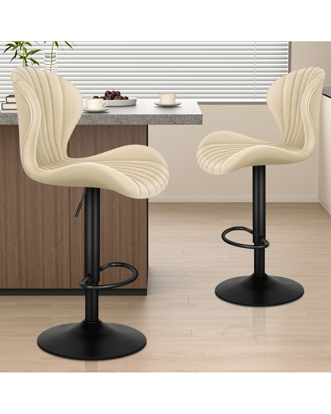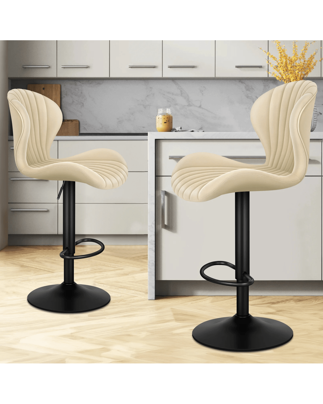 Sold by Aussie Union GroupAlfordson 2x Bar Stools Gas Lift Air Leather Bar Chairs Kitchen Swivel - Beige