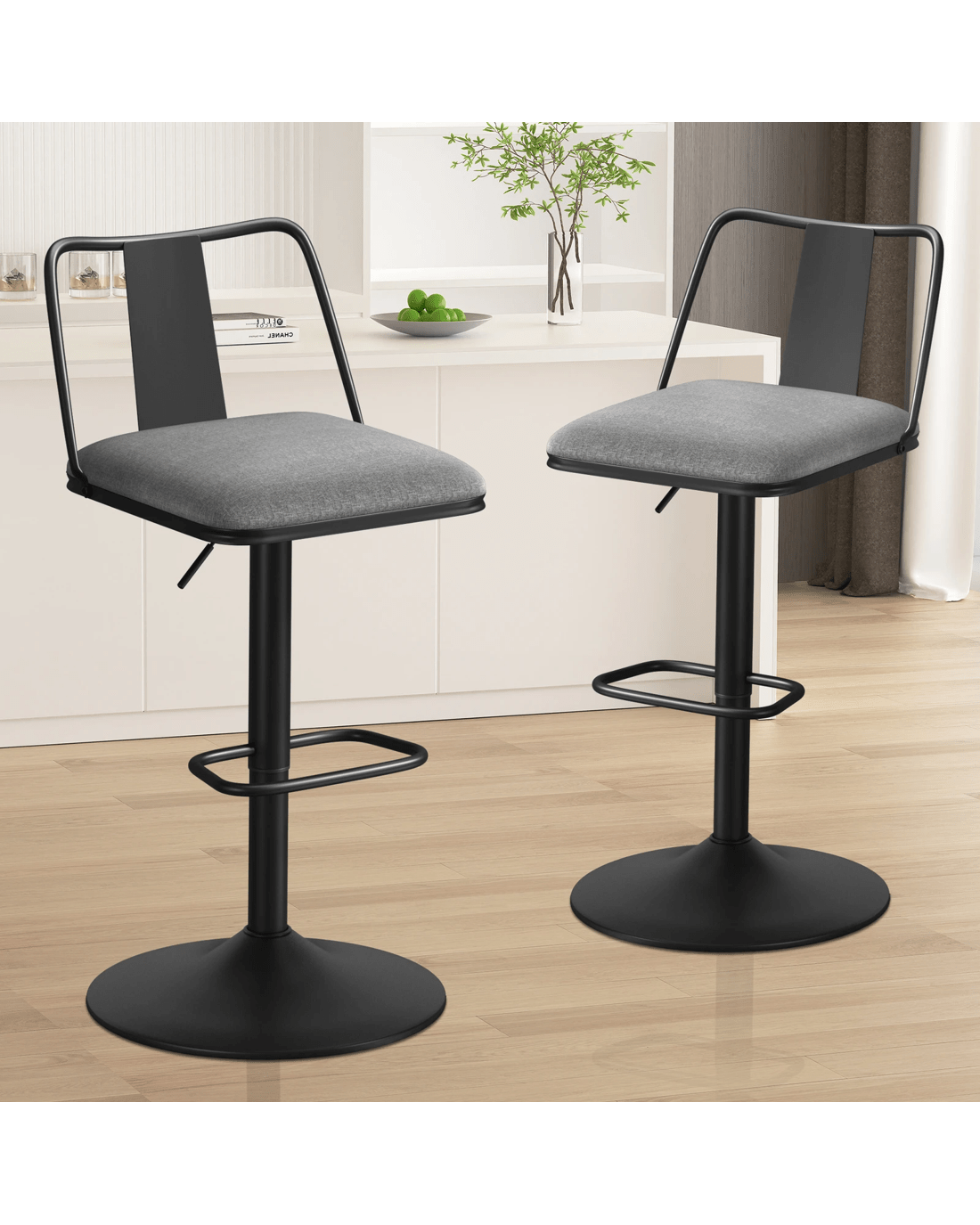 Sold by Aussie Union GroupAlfordson 2x Bar Stools Gas Lift Fabric Bar Chairs Kitchen Swivel Gloria - Grey