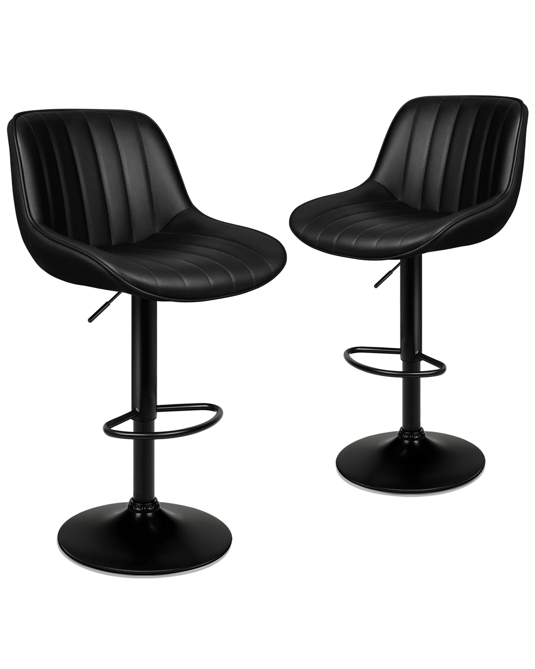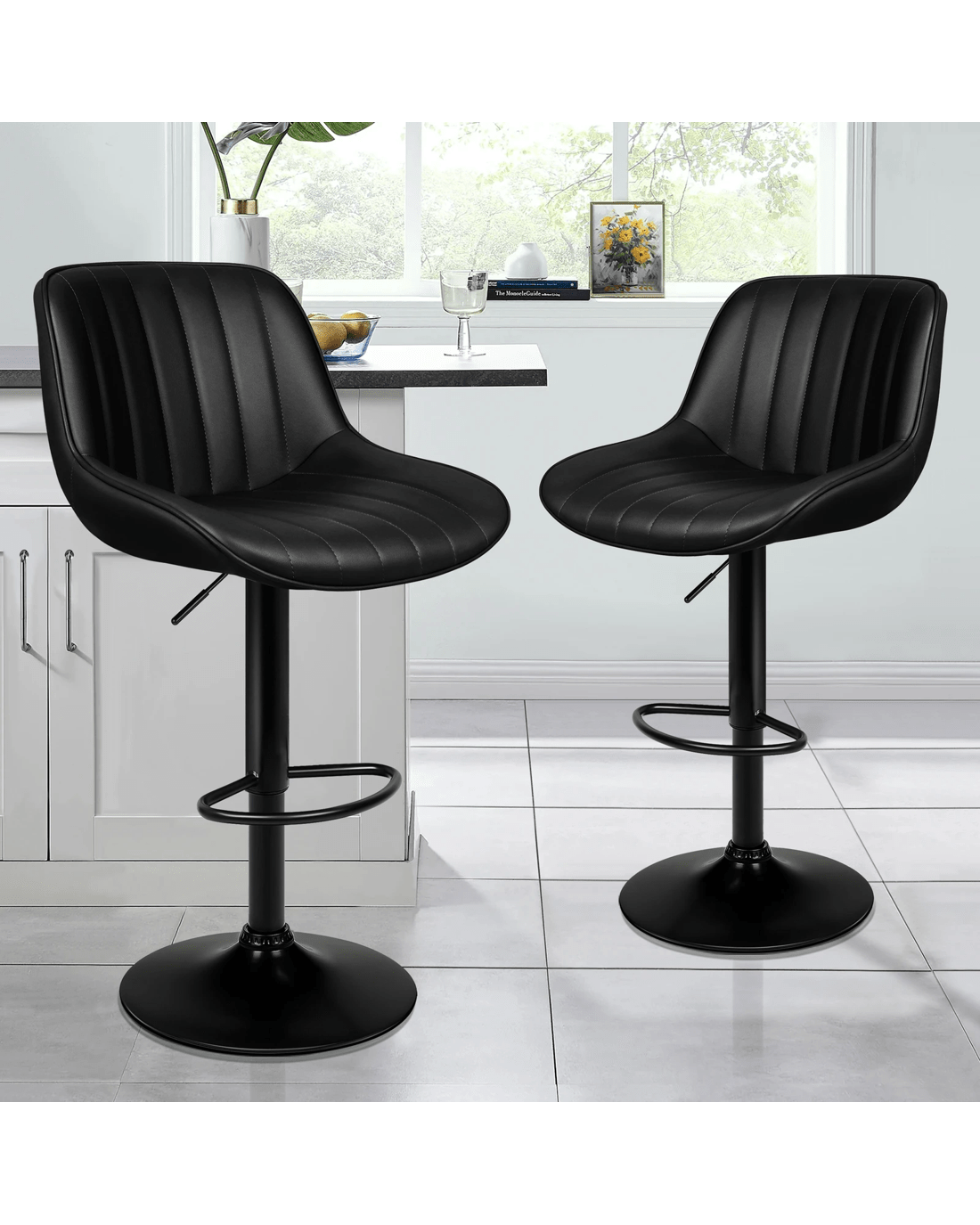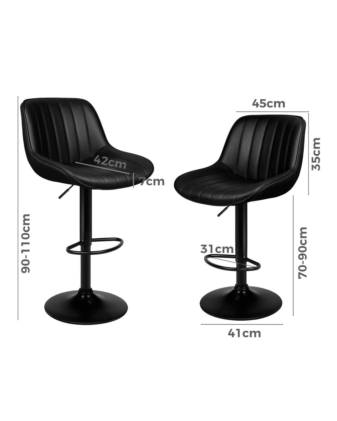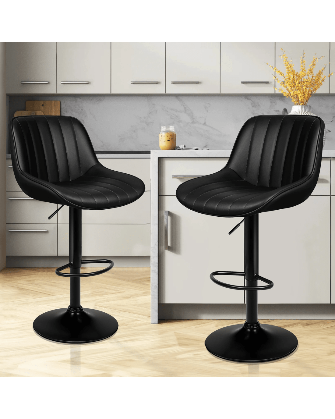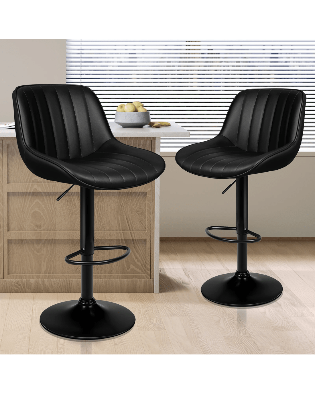 Alfordson 2x Bar Stools Gas Lift Leather Bar Chairs Kitchen Swivel - Black