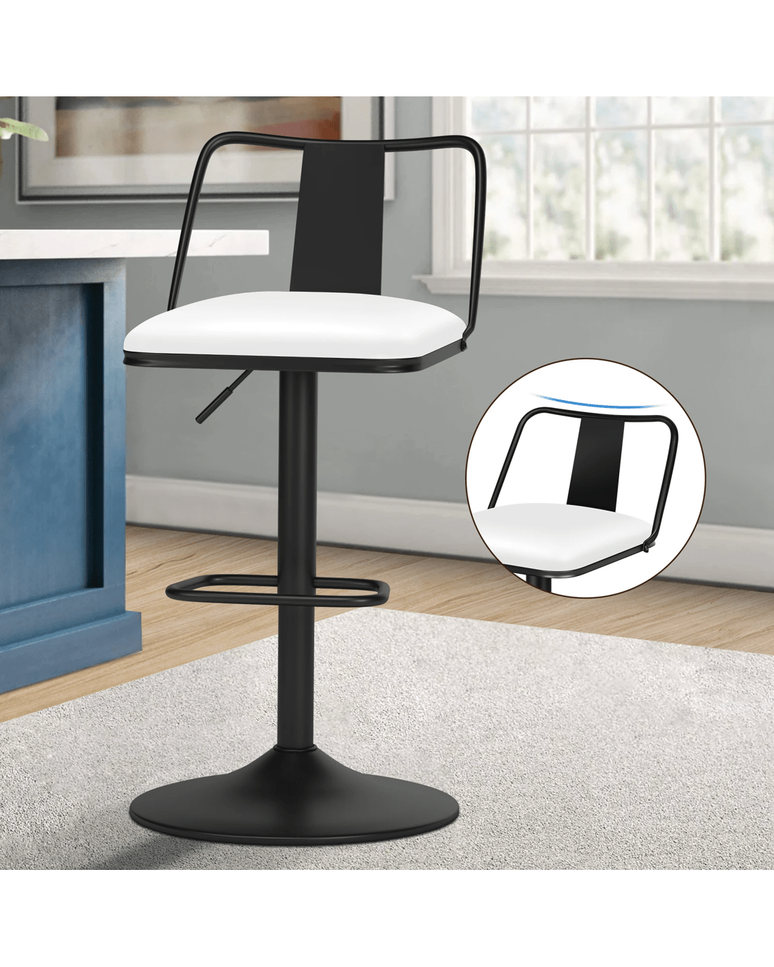 As always, we have no compromise on materials Use - ameter of the base is increased, resulting in larger supporting area, so the seat becomes more secure and stable with long-lasting durability. Better still, the shiny chrome base and footrest complement the stool's modern design. A rubber floor protector ring, embedded in the case, reduces noise and protects your floor by sliding smoothly when you need to move the stool.