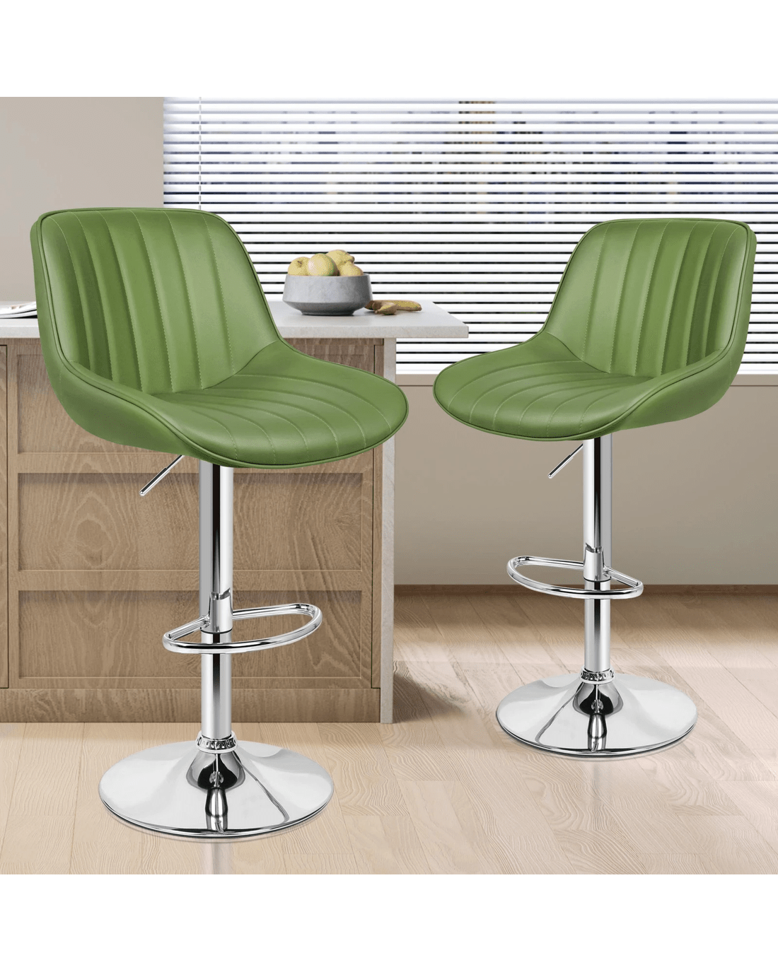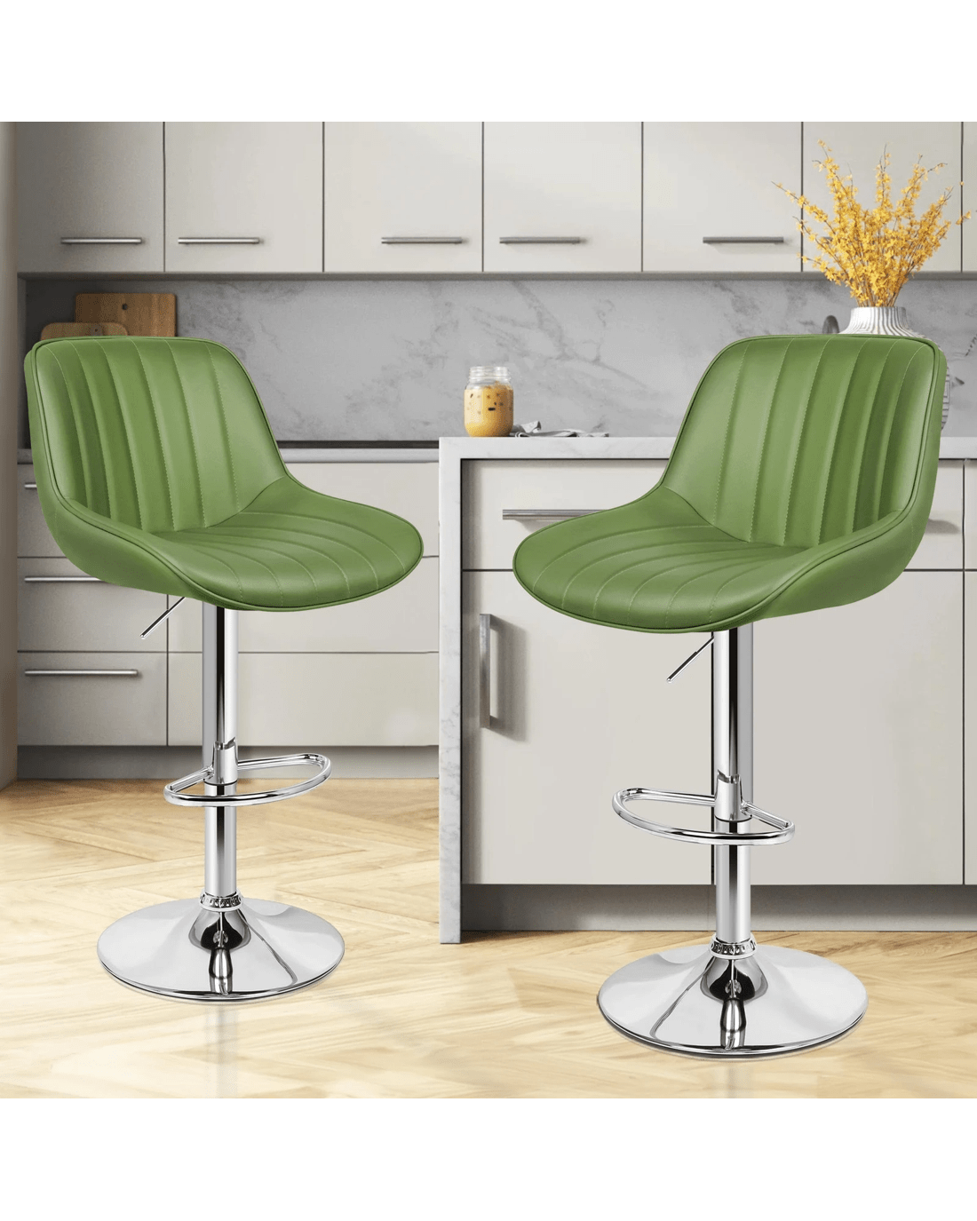 Sold by Aussie Union GroupAlfordson 2x Bar Stools Gas Lift Leather Bar Chairs Kitchen Swivel - Green