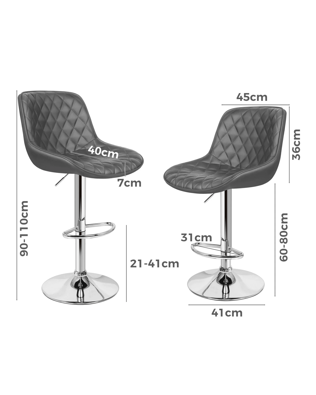 As always, we have no compromise on materials Use - ameter of the base is increased, resulting in larger supporting area, so the seat becomes more secure and stable with long-lasting durability. Better still, the shiny chrome base and footrest complement the stool's modern design. A rubber floor protector ring, embedded in the case, reduces noise and protects your floor by sliding smoothly when you need to move the stool.