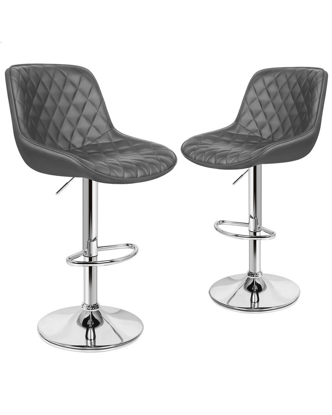 Sold by Aussie Union GroupAlfordson 2x Bar Stools Gas Lift Leather Bar Chairs Kitchen Swivel - Grey