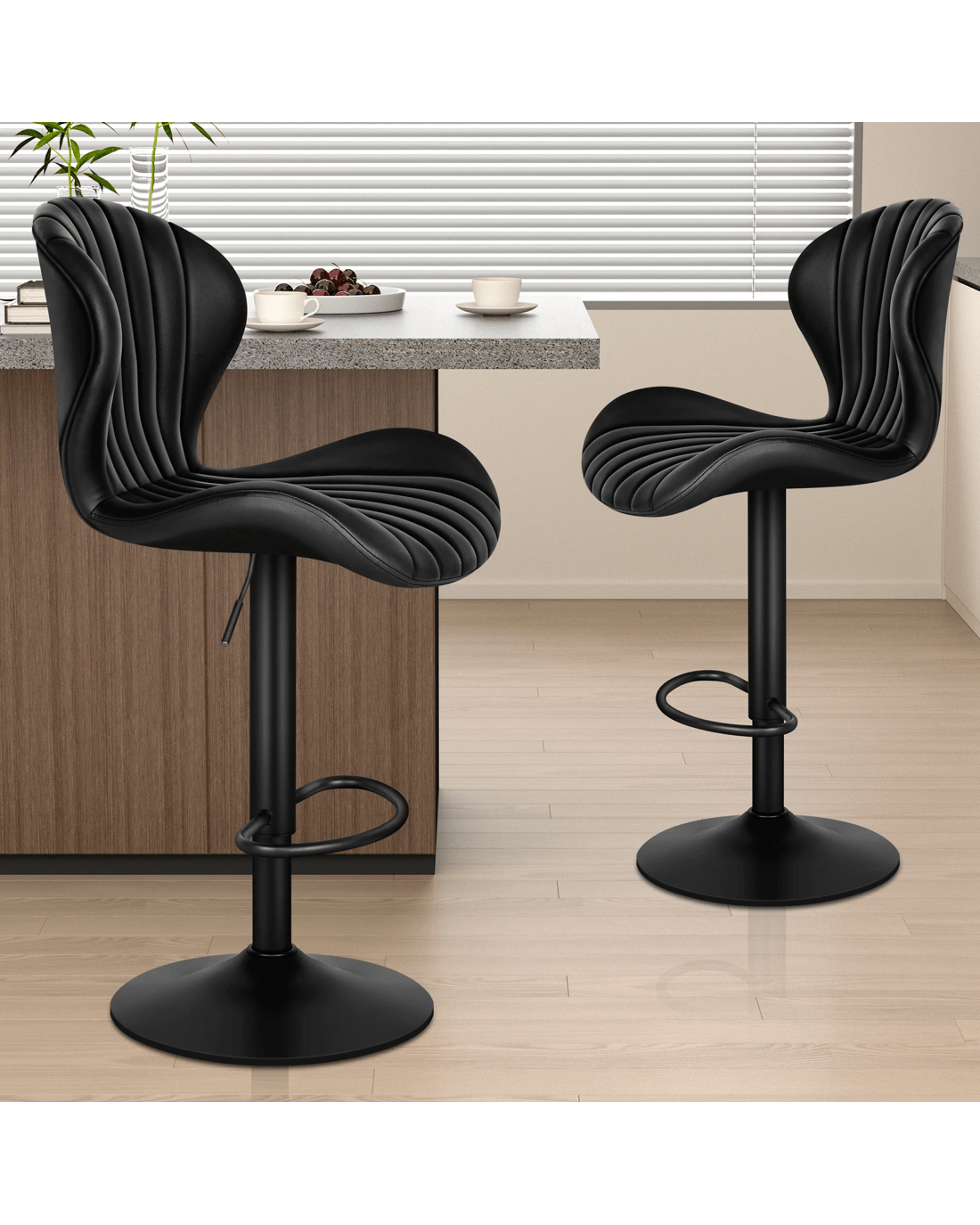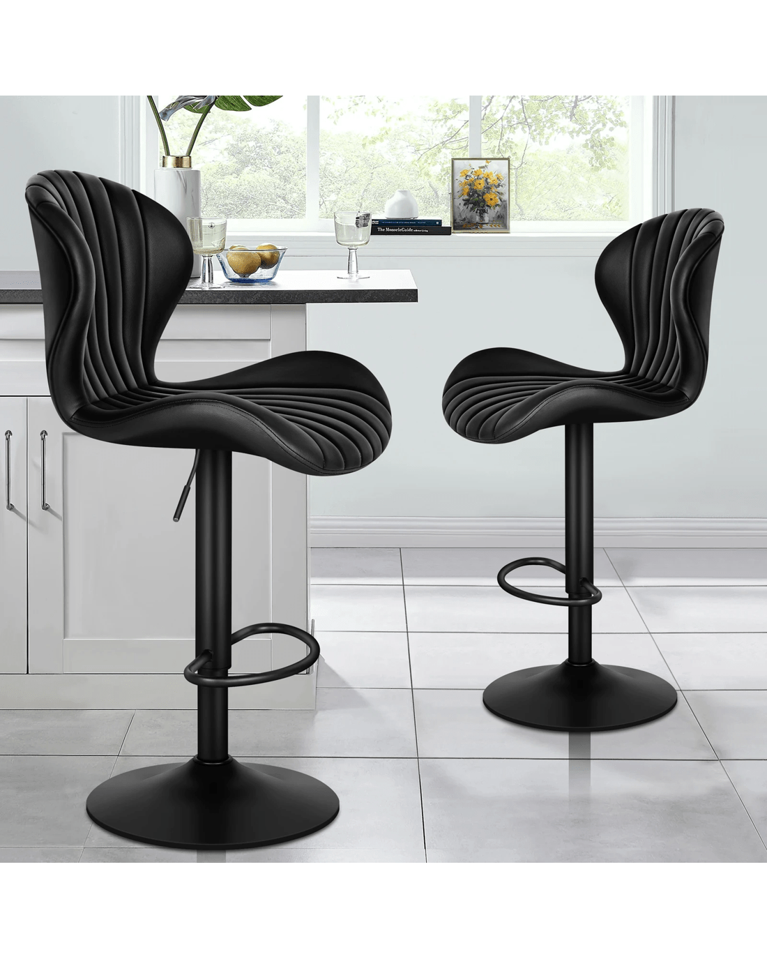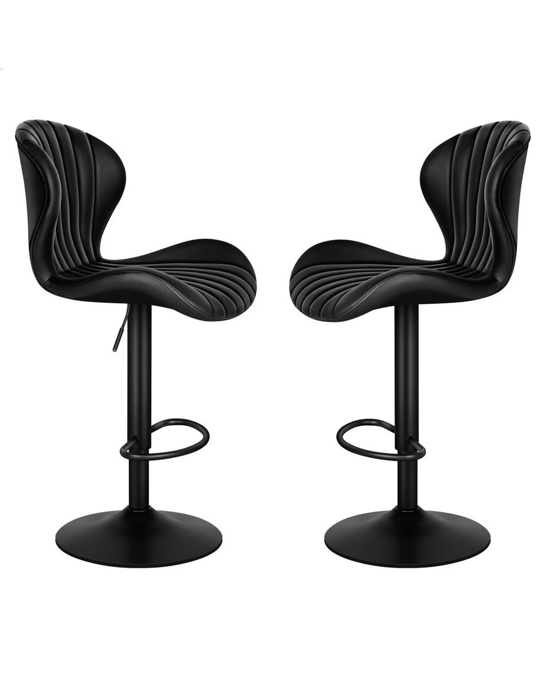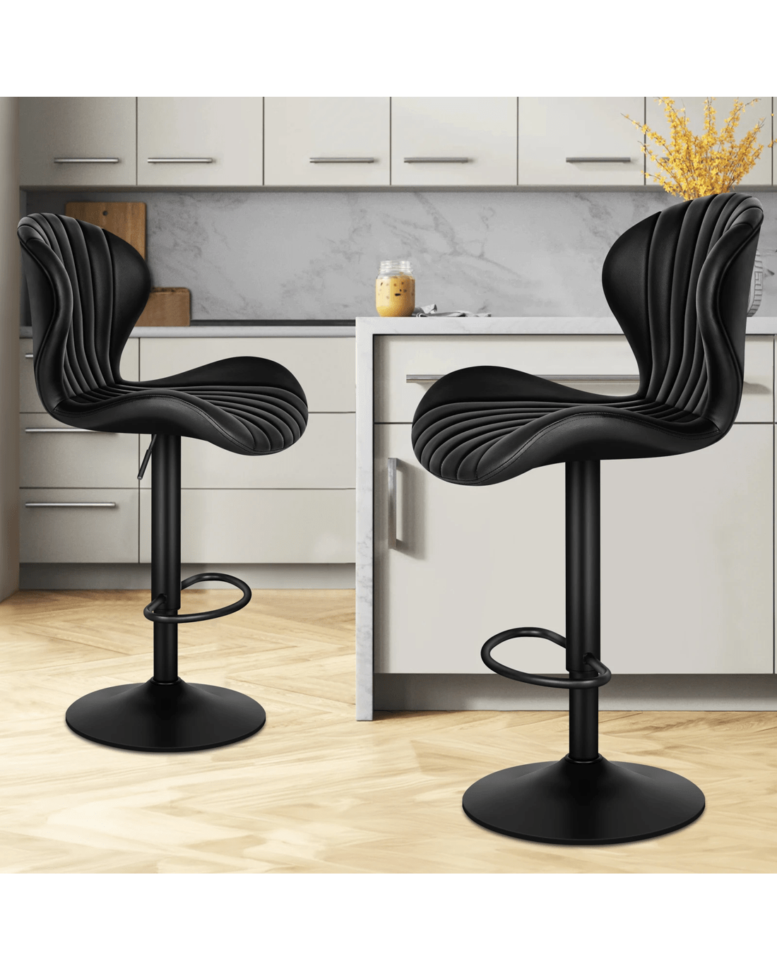 Sold by Aussie Union GroupAlfordson 2x Bar Stools Gas Lift Leather Bar Chairs Kitchen Swivel Stella - Black
