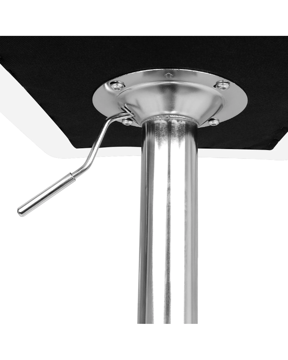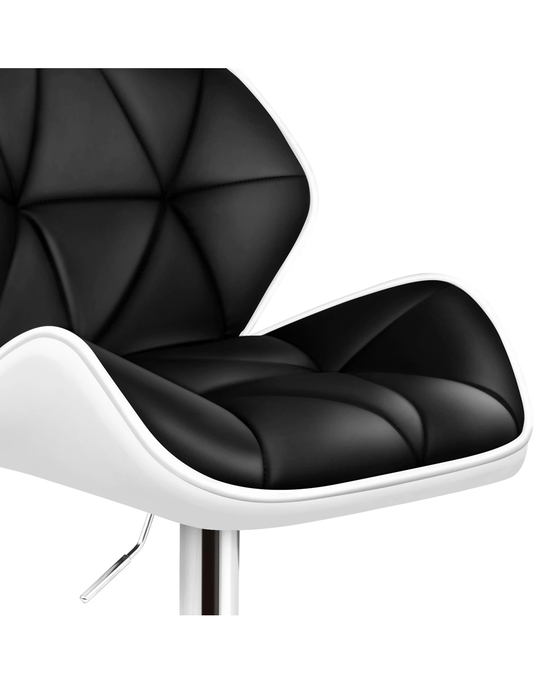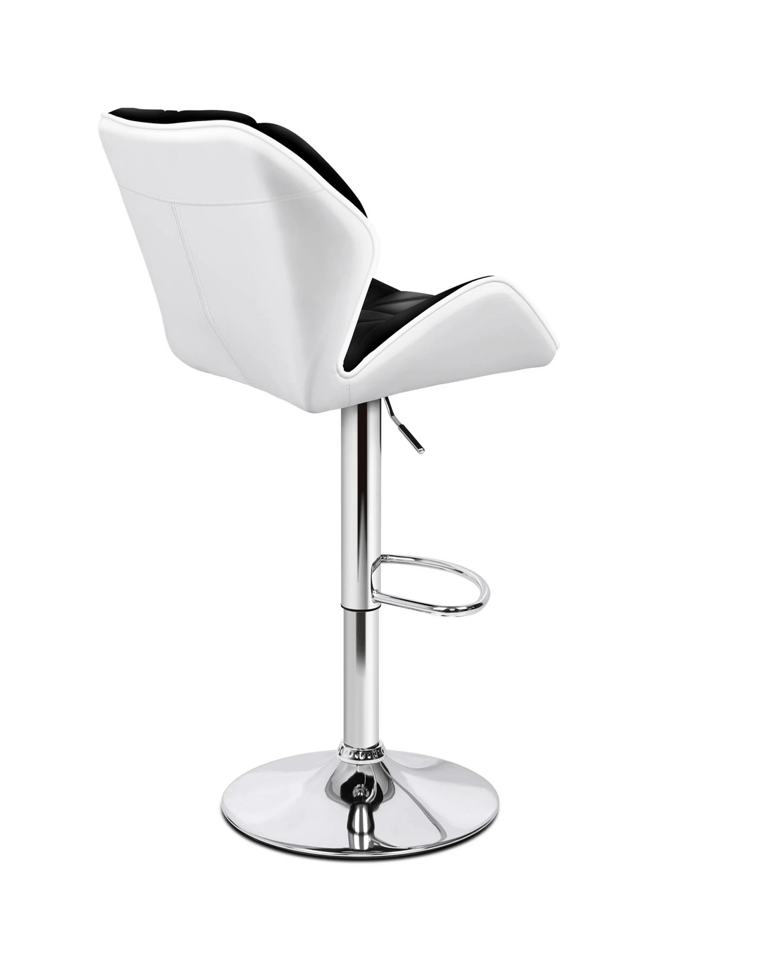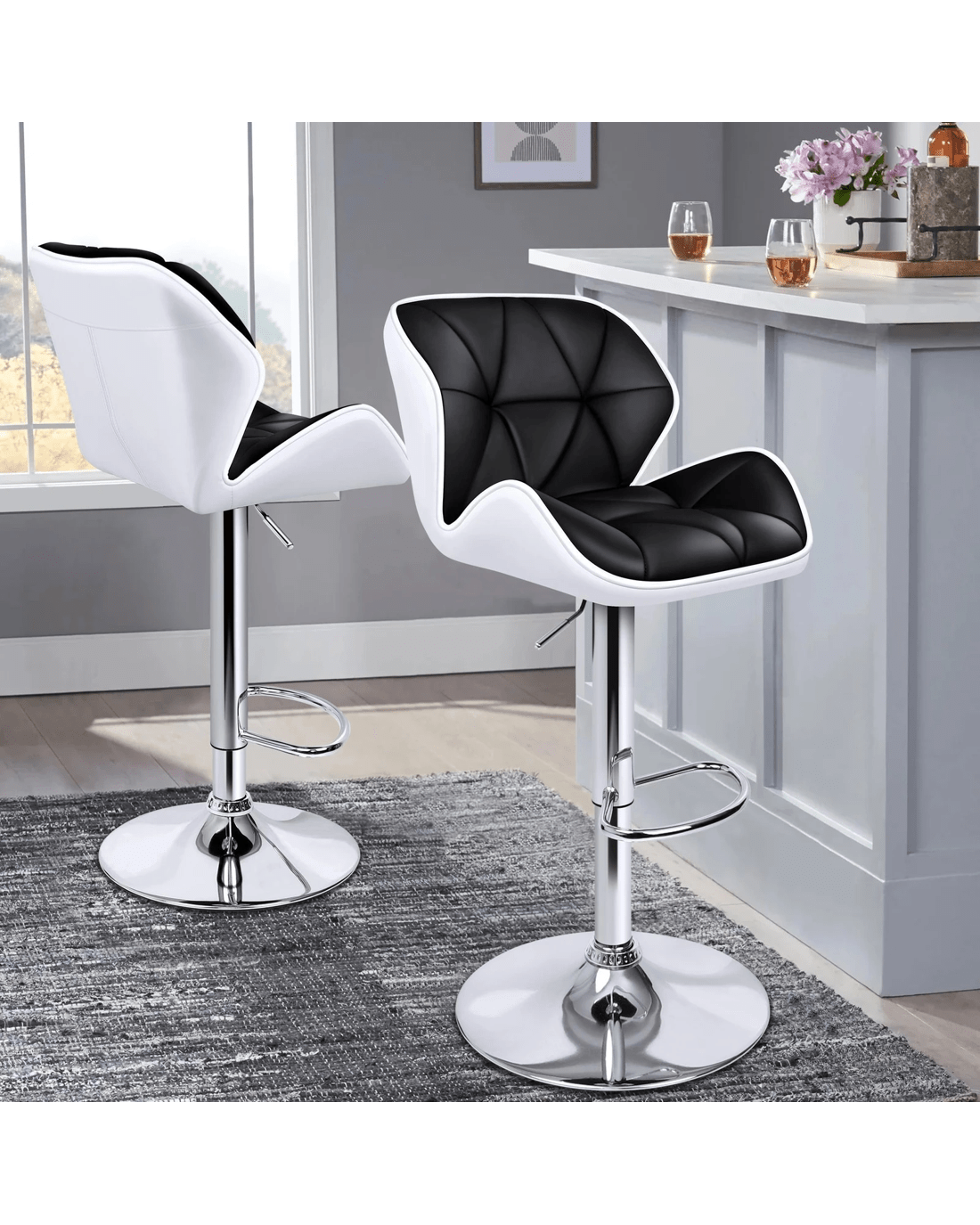 Upholstered in premium PU leather, the seat and backrest are richly padded with high-resilience foam. It presents a 360 degree swivel and adjustable seat height. The shiny chrome base and footrest complement the stool's modern design. A rubber floor protector ring reduces noise and protects your floor.