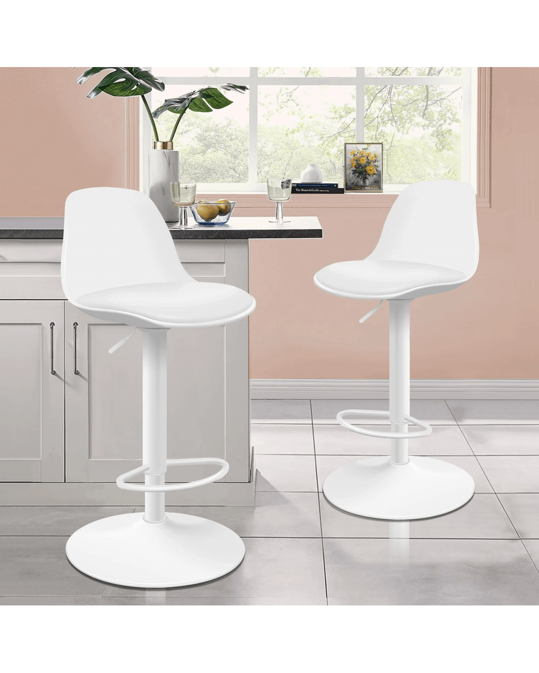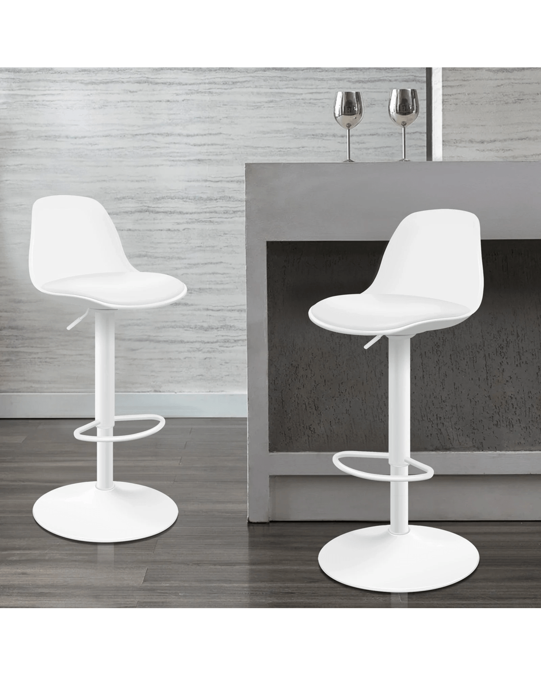 Sold by Aussie Union GroupAlfordson 2x Bar Stools Kitchen Swivel Chair Leather Gas Lift Philip - White