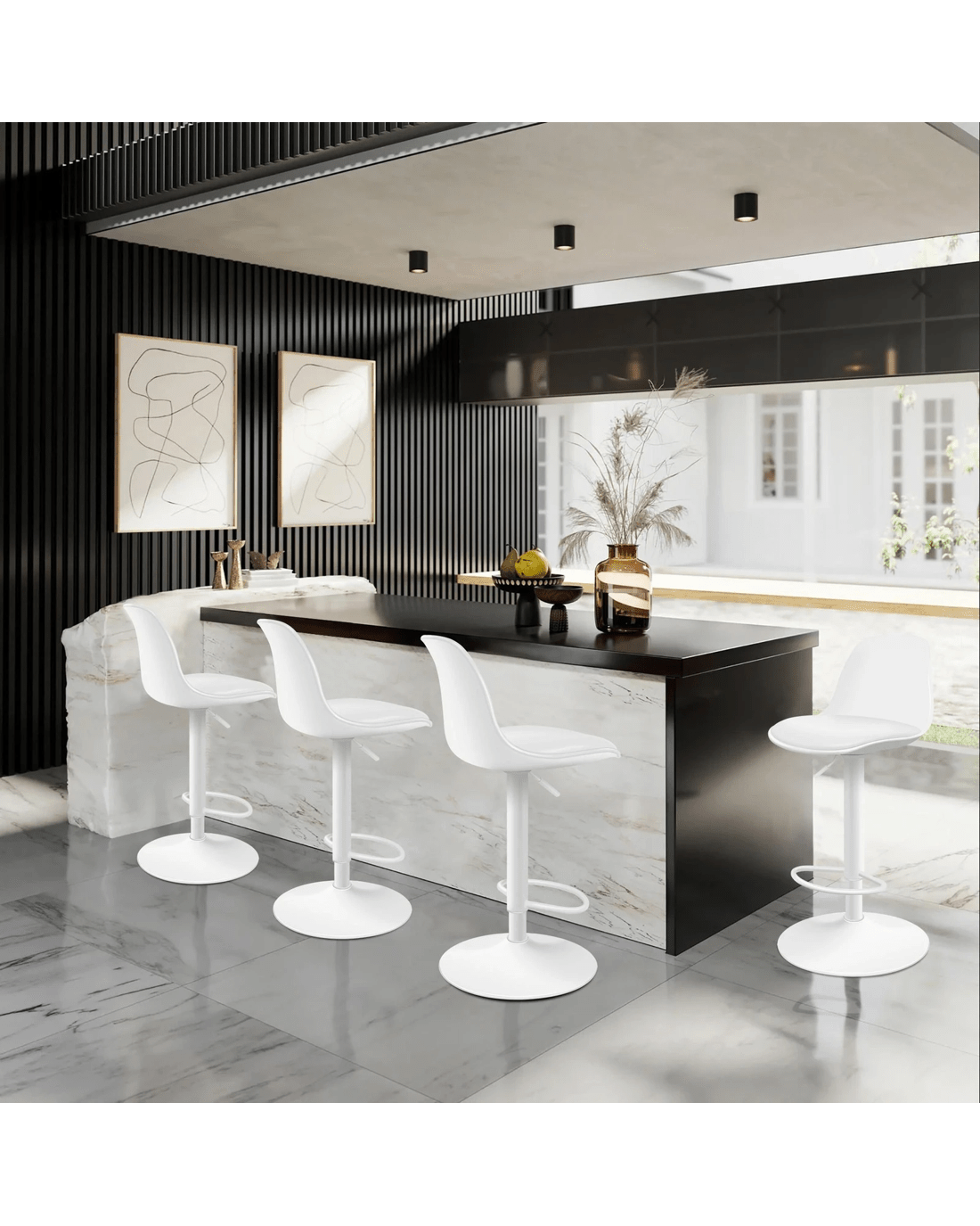 Not only with its iconic design and timeless appeal, but it is also cozy and practical. Upholstered in premium PU leather, the strong PP seat is richly padded with high-resilience foam and comfortable. Thanks to its high-density foam, they provide adequate support in the right places for a delightful sitting experience. Together with its gas lift, you don't need to worry about explosion. It presents a 360 degree swivel and adjustable seat height, which makes your conversations smoothie and easy.