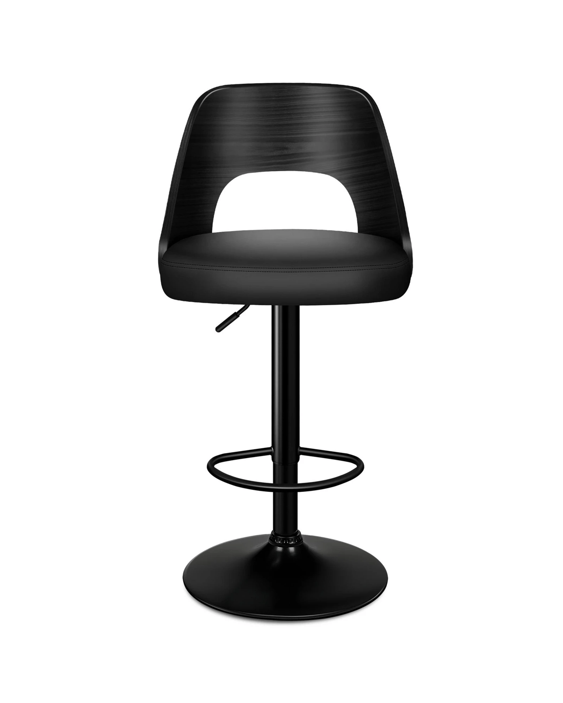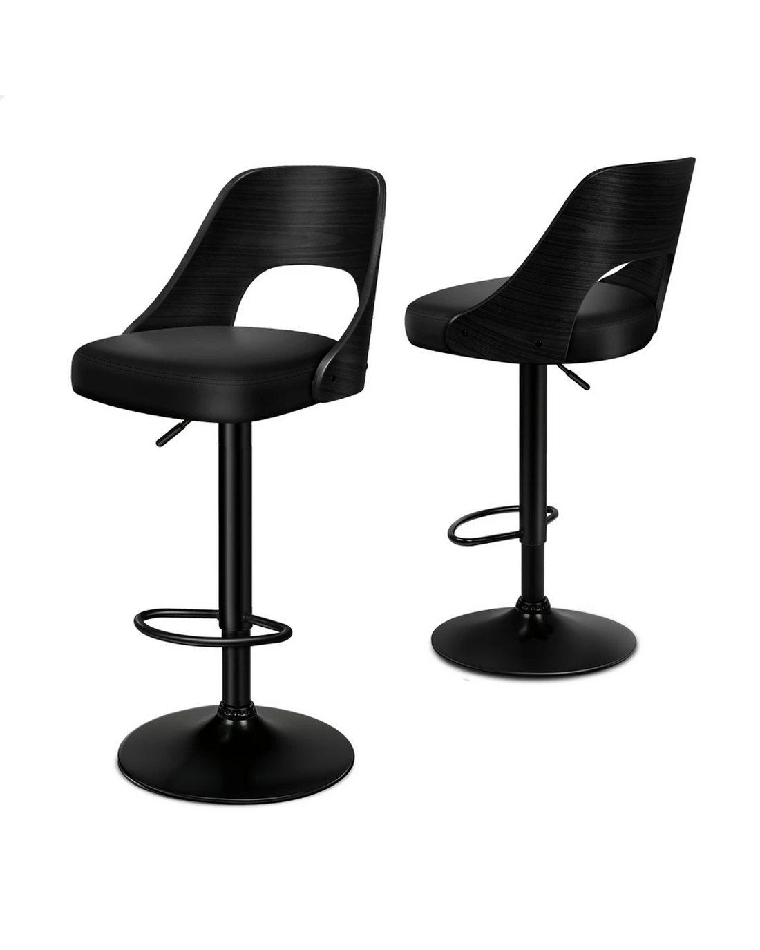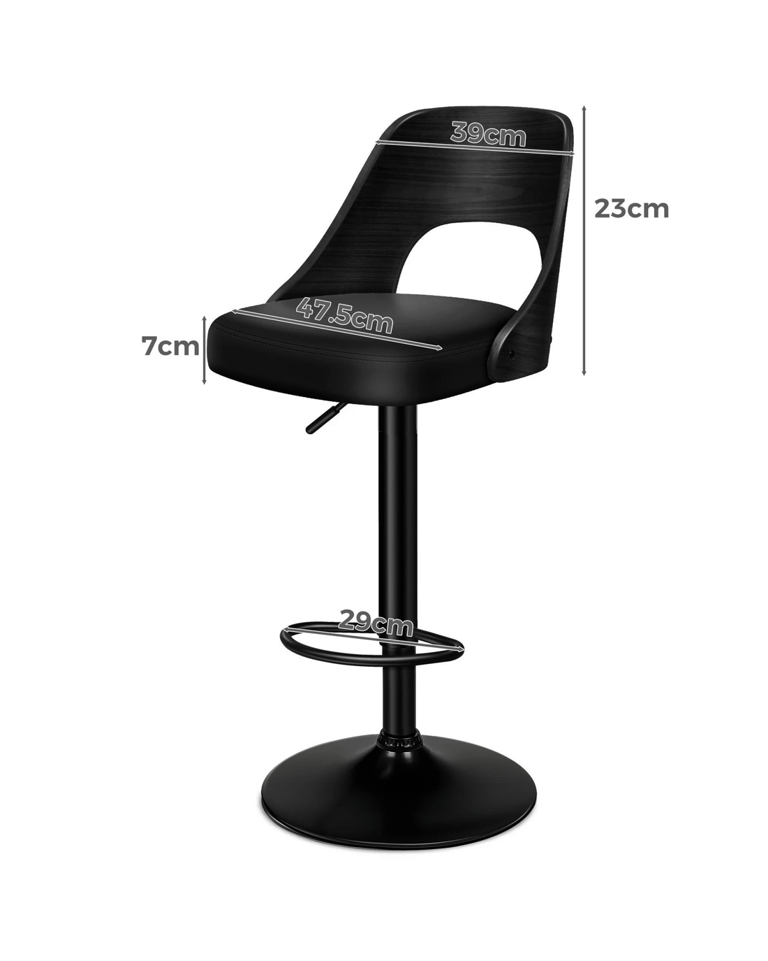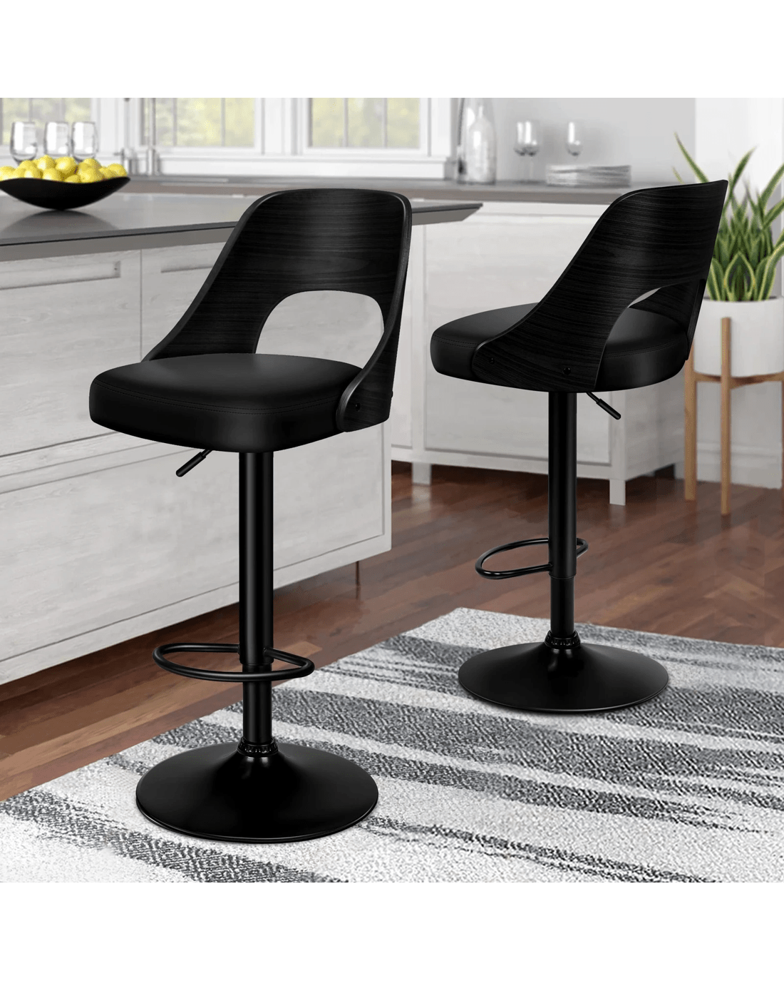 Alfordson 2x Bar Stools Kitchen Swivel Chair Wooden Leather Gas Lift - Black