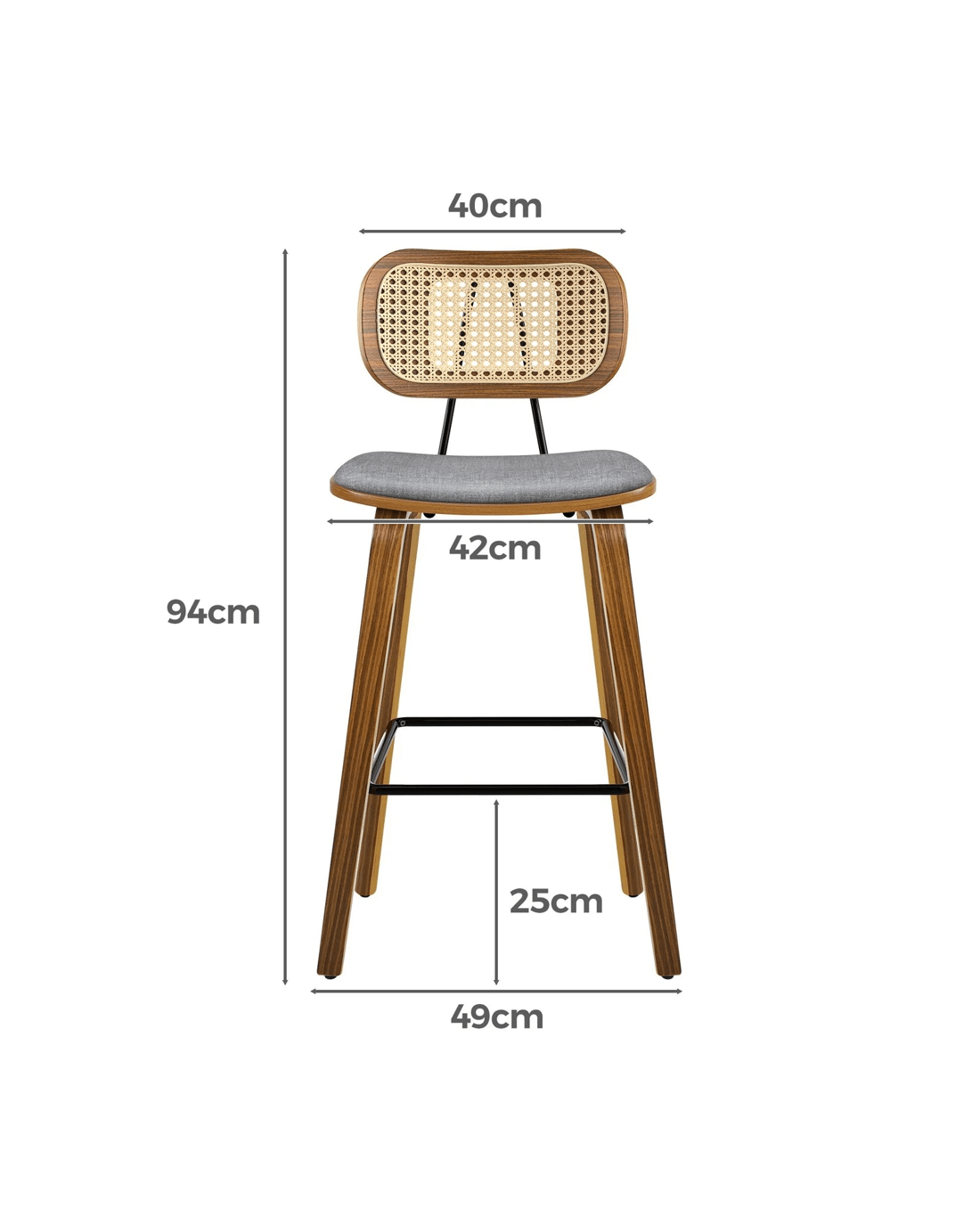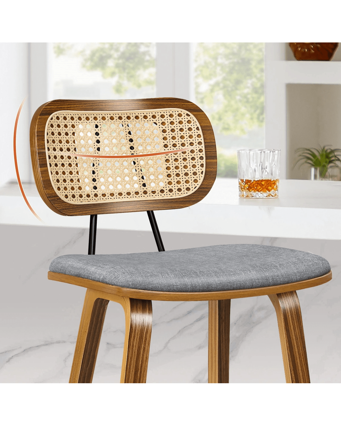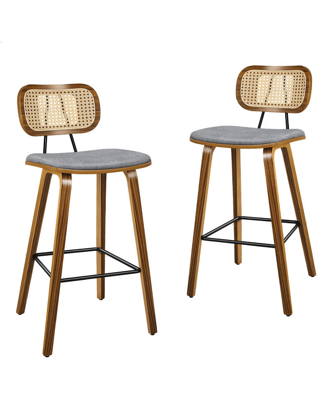 Featuring a stylish and comfortable rattan backrest, this barstool adds both elegance and support. Perfect for those who desire a chic look without sacrificing comfort, this Bar Stool - ideal choice for enhancing your dining or entertaining space. Prop up your feet on the footrest as you enjoy brunch or a late-night snack. As always, we have no compromise on materials Use - th an extra layer of mesh, the rattan backrest is designed to be long-lasting durability. It also features adjustable leveler on all legs to provide stability on uneven surfaces.