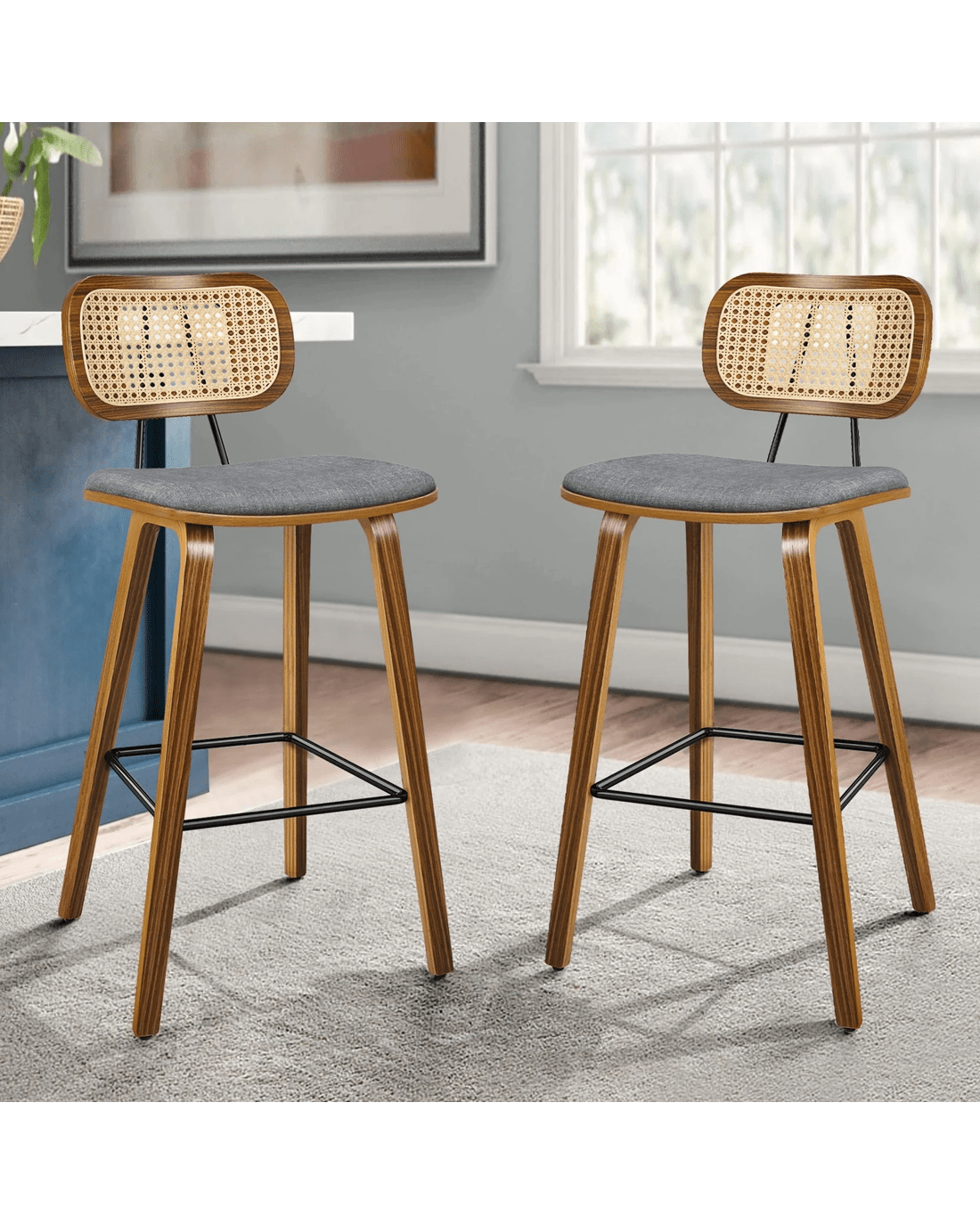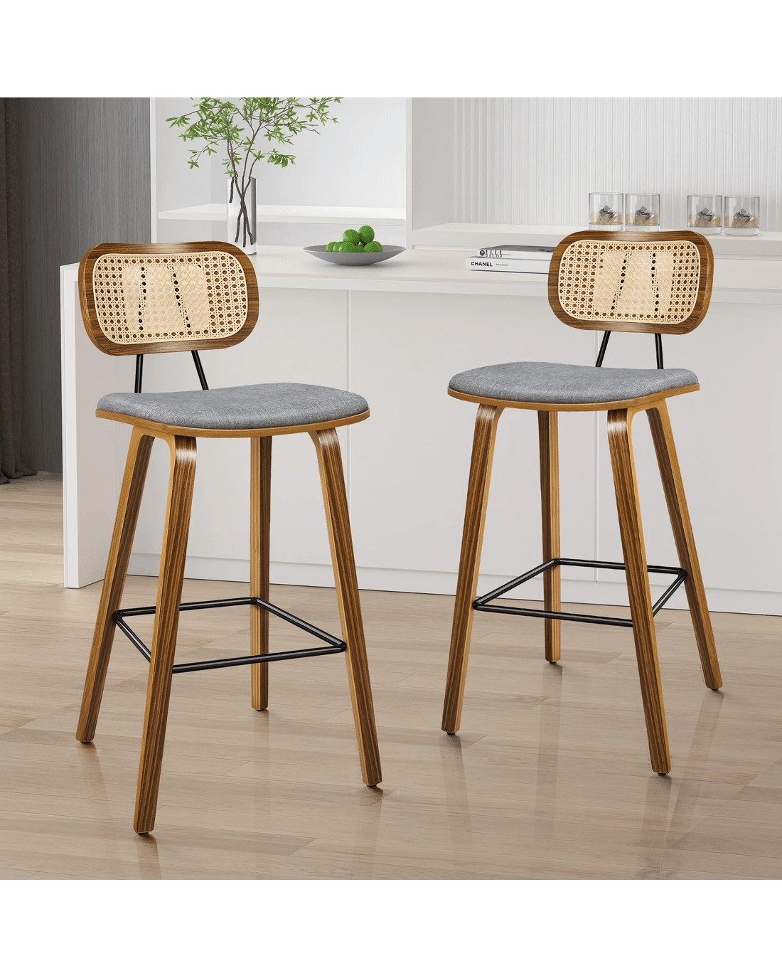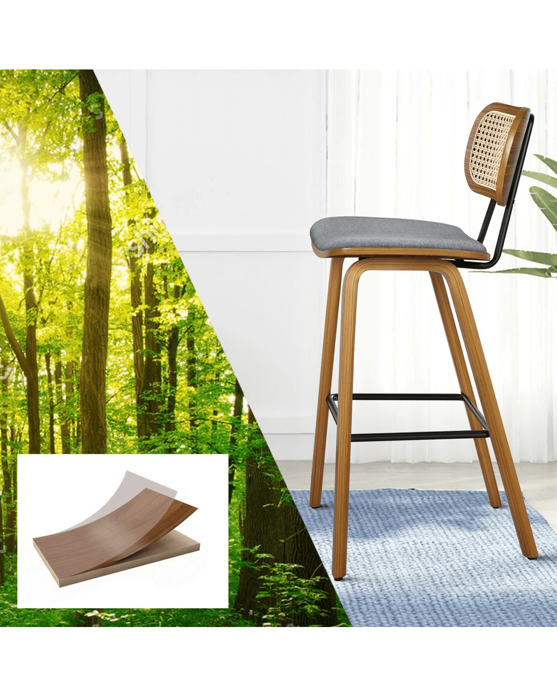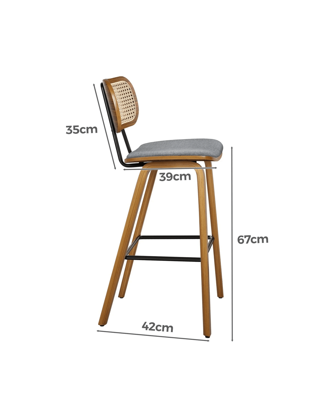 Featuring a stylish and comfortable rattan backrest, this barstool adds both elegance and support. Perfect for those who desire a chic look without sacrificing comfort, this Bar Stool - ideal choice for enhancing your dining or entertaining space. Prop up your feet on the footrest as you enjoy brunch or a late-night snack. As always, we have no compromise on materials Use - th an extra layer of mesh, the rattan backrest is designed to be long-lasting durability. It also features adjustable leveler on all legs to provide stability on uneven surfaces.