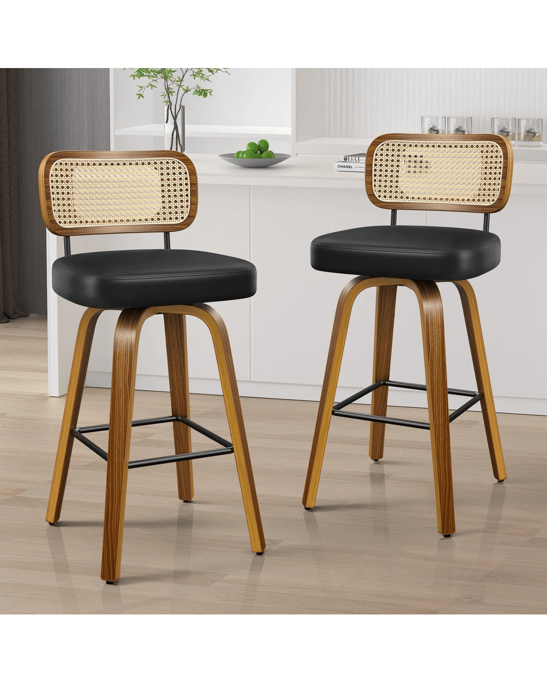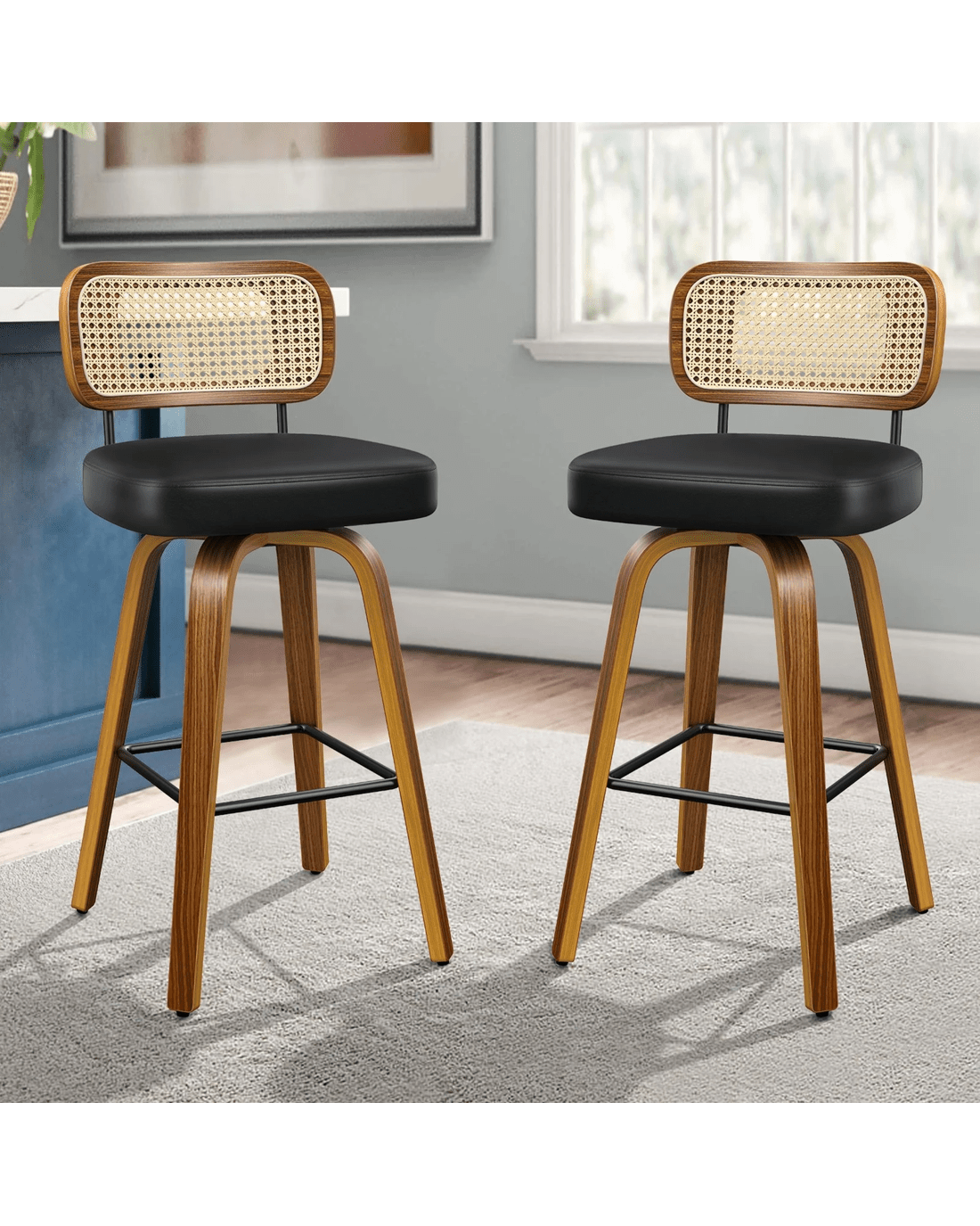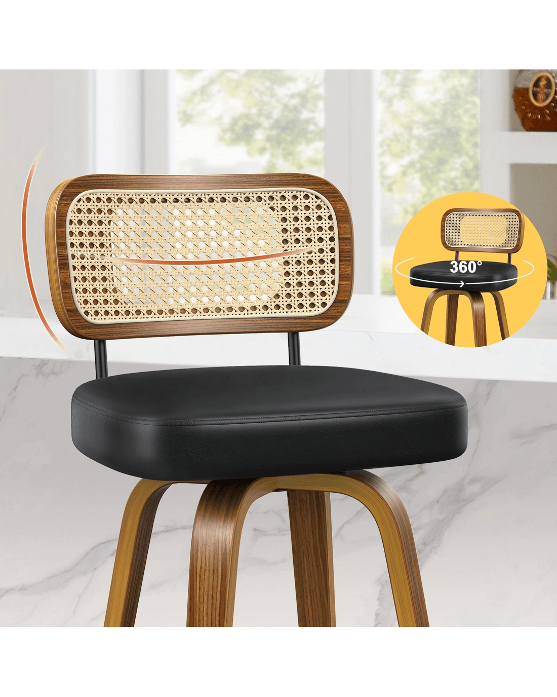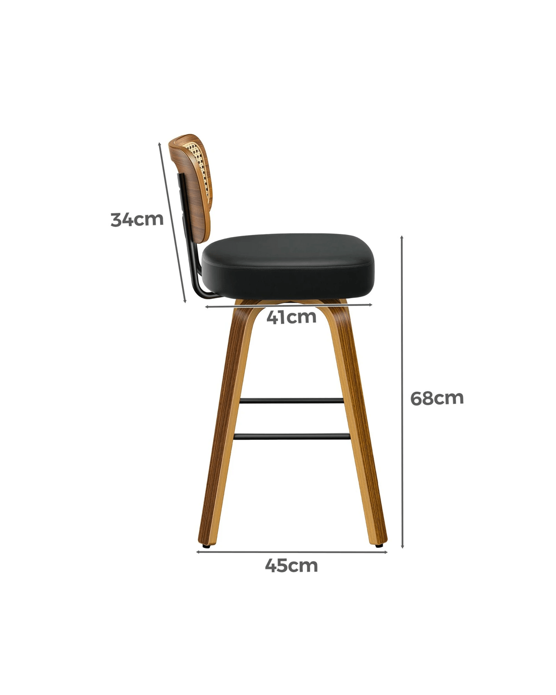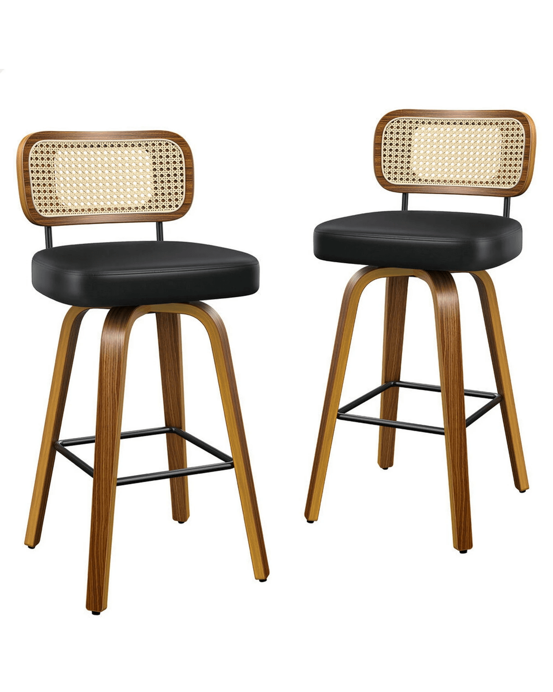 Featuring a stylish and comfortable rattan backrest, this barstool adds both elegance and support. Perfect for those who desire a chic look without sacrificing comfort, this Bar Stool - ideal choice for enhancing your dining or entertaining space. Prop up your feet on the footrest as you enjoy brunch or a late-night snack. As always, we have no compromise on materials Use - th an extra layer of mesh, the rattan backrest is designed to be long-lasting durability. It also features adjustable leveler on all legs to provide stability on uneven surfaces.