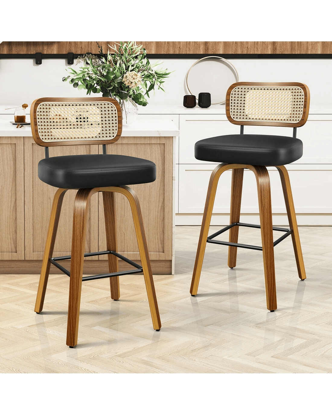 Perfectly tailored from rattan and durable wooden legs, these stools embody stunning Bohemian and Scandinavian style and give a unique touch to the kitchen island and bar counter. Blending seamlessly with your existing decor, they bring a perfect amount of stylish function and carefree aesthetics to your home.
