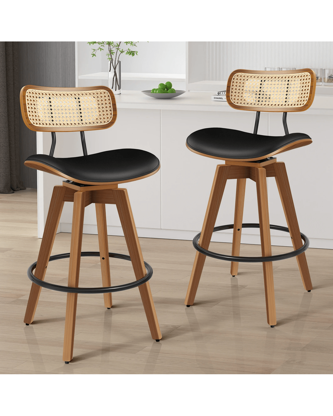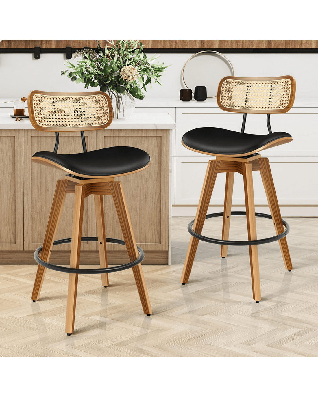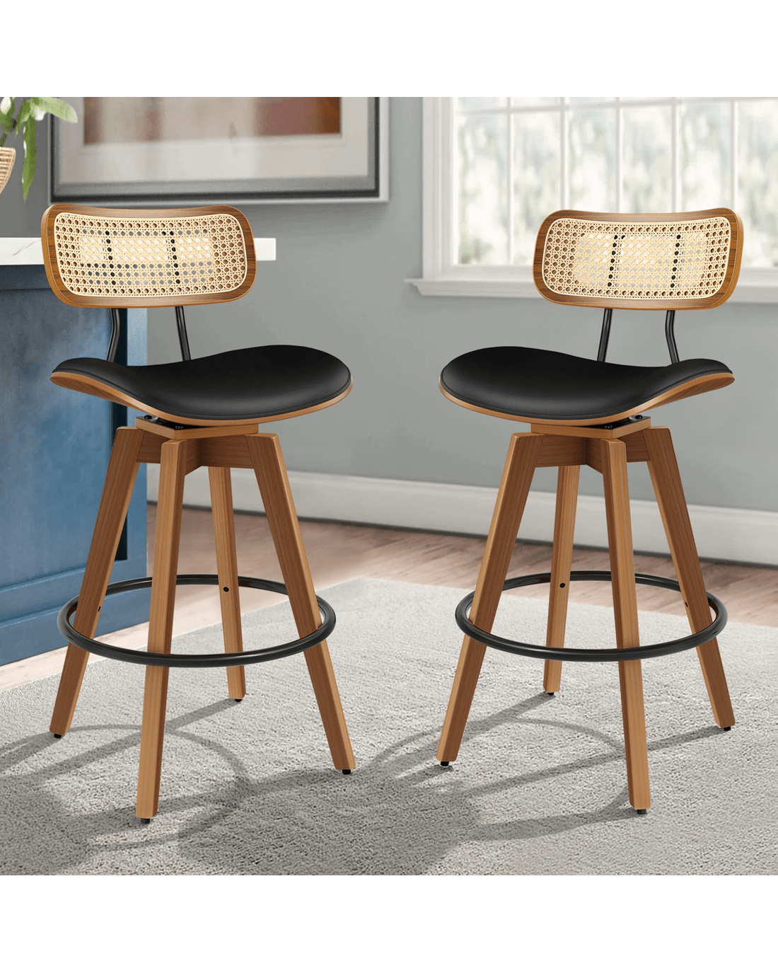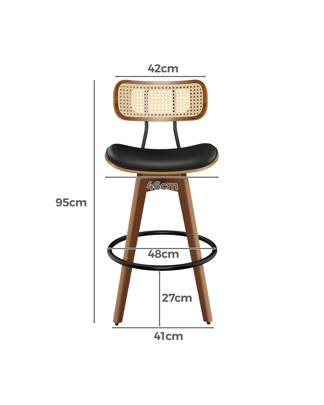 Featuring a stylish and comfortable rattan backrest, this barstool adds both elegance and support. Perfect for those who desire a chic look without sacrificing comfort, this Bar Stool - ideal choice for enhancing your dining or entertaining space. Prop up your feet on the footrest as you enjoy brunch or a late-night snack. As always, we have no compromise on materials Use - th an extra layer of mesh, the rattan backrest is designed to be long-lasting durability. It also features adjustable leveler on all legs to provide stability on uneven surfaces.