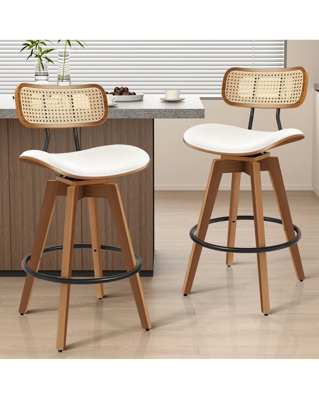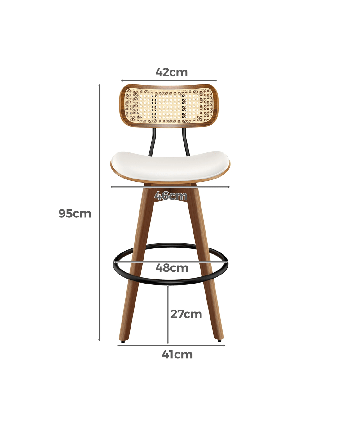 Sold by Aussie Union GroupAlfordson 2x Bar Stools Kitchen Vintage Leather Seat Rattan Chair - White
