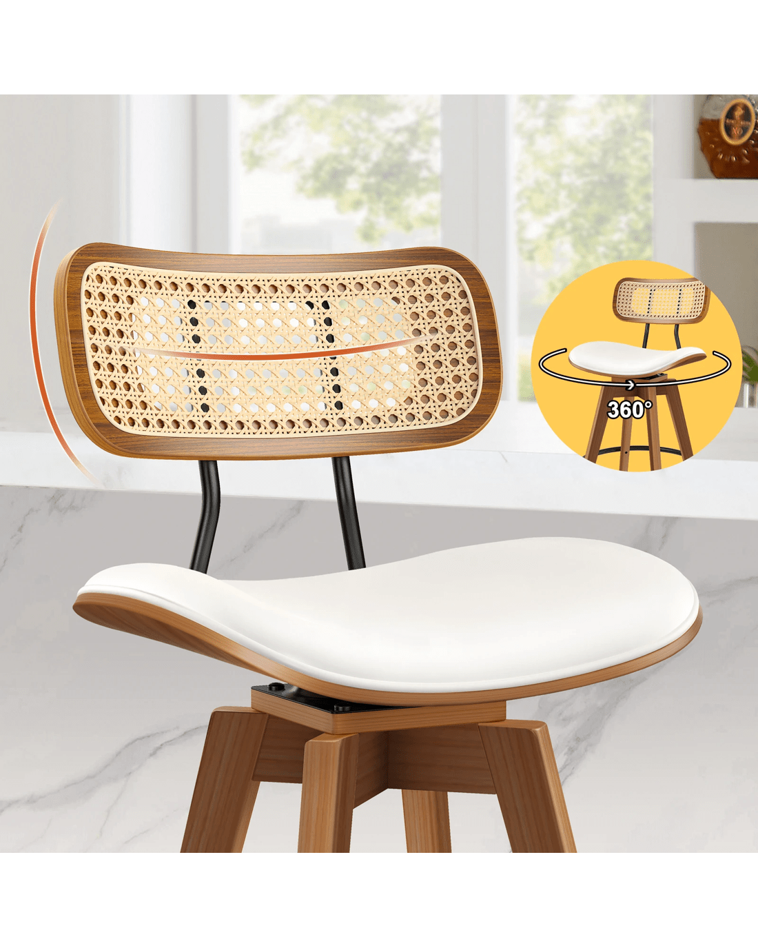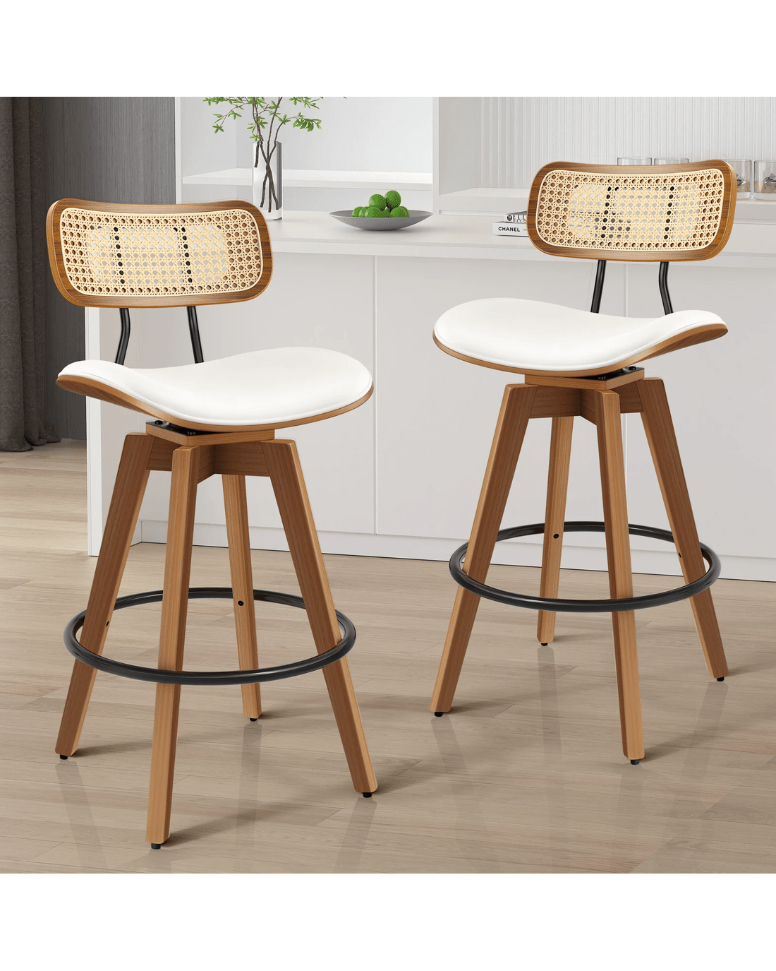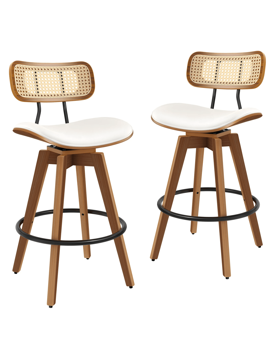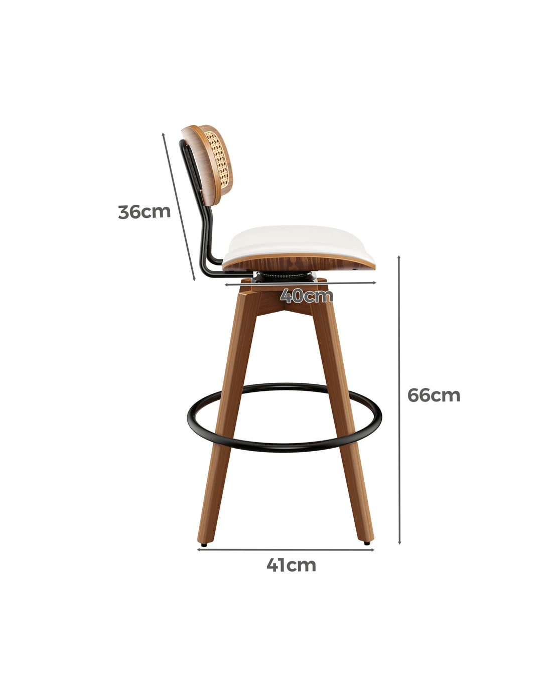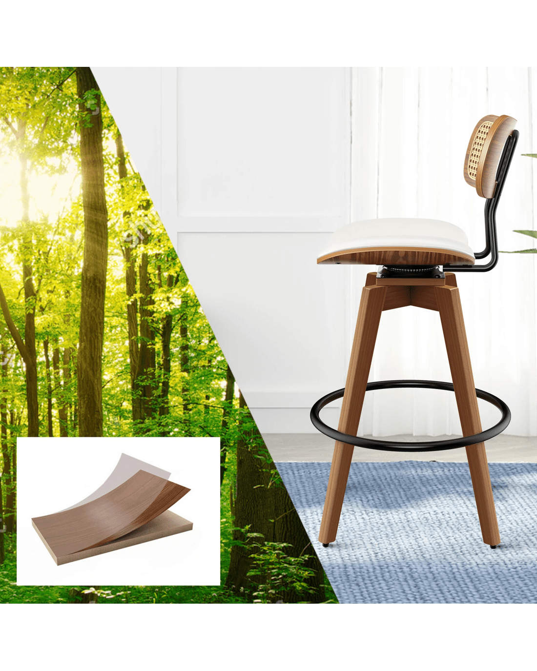 Featuring a stylish and comfortable rattan backrest, this barstool adds both elegance and support. Perfect for those who desire a chic look without sacrificing comfort, this Bar Stool - ideal choice for enhancing your dining or entertaining space. Prop up your feet on the footrest as you enjoy brunch or a late-night snack. As always, we have no compromise on materials Use - th an extra layer of mesh, the rattan backrest is designed to be long-lasting durability. It also features adjustable leveler on all legs to provide stability on uneven surfaces.
