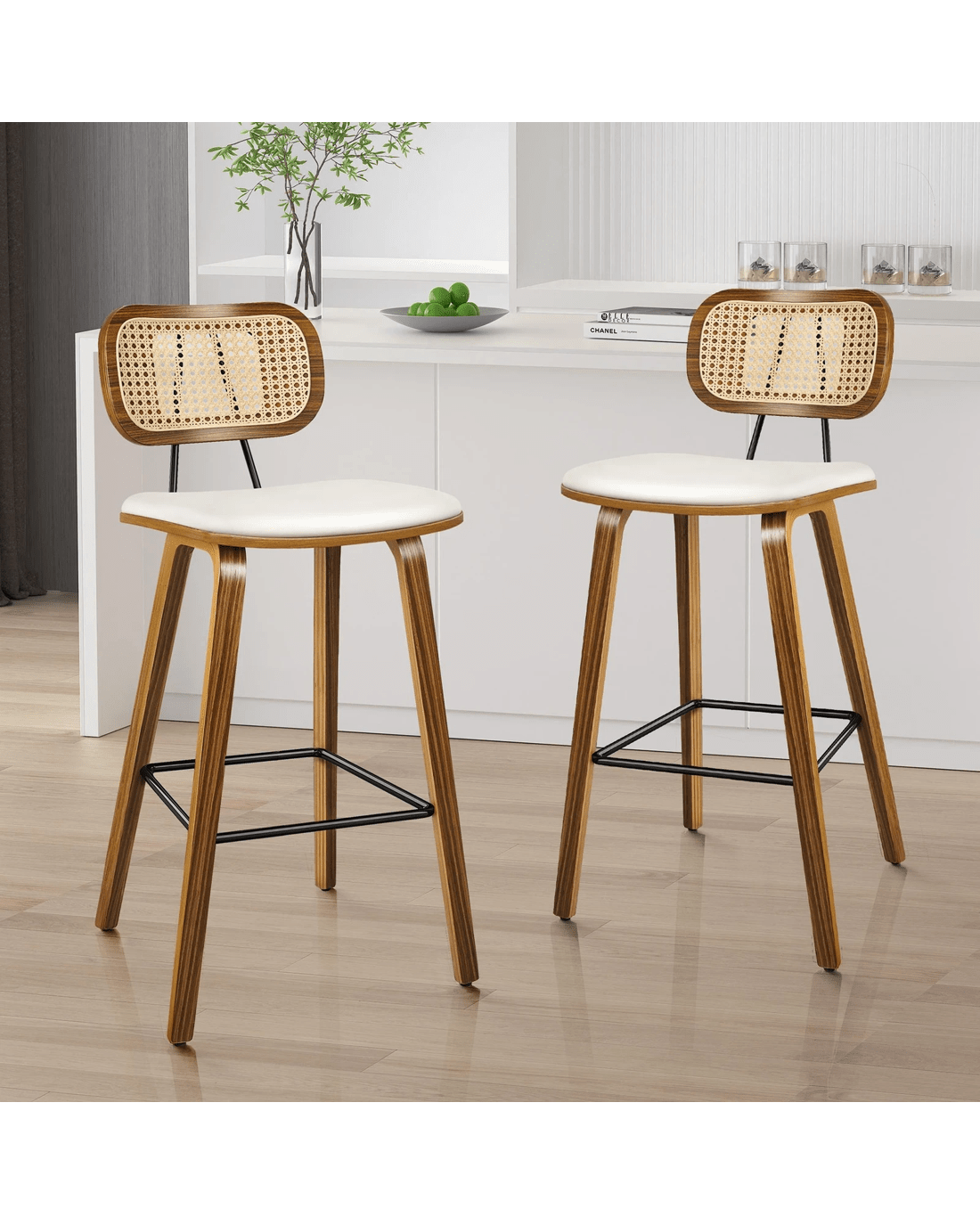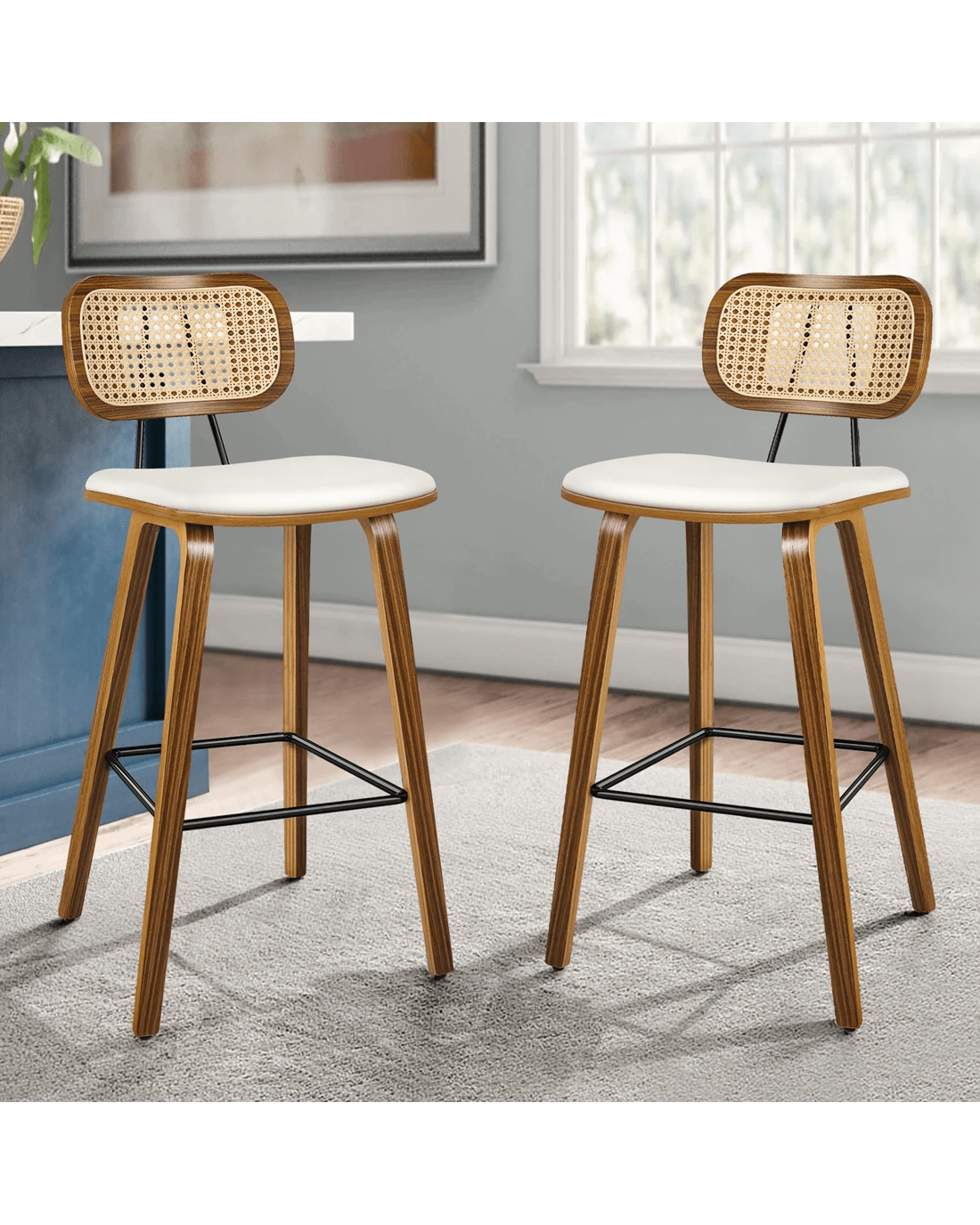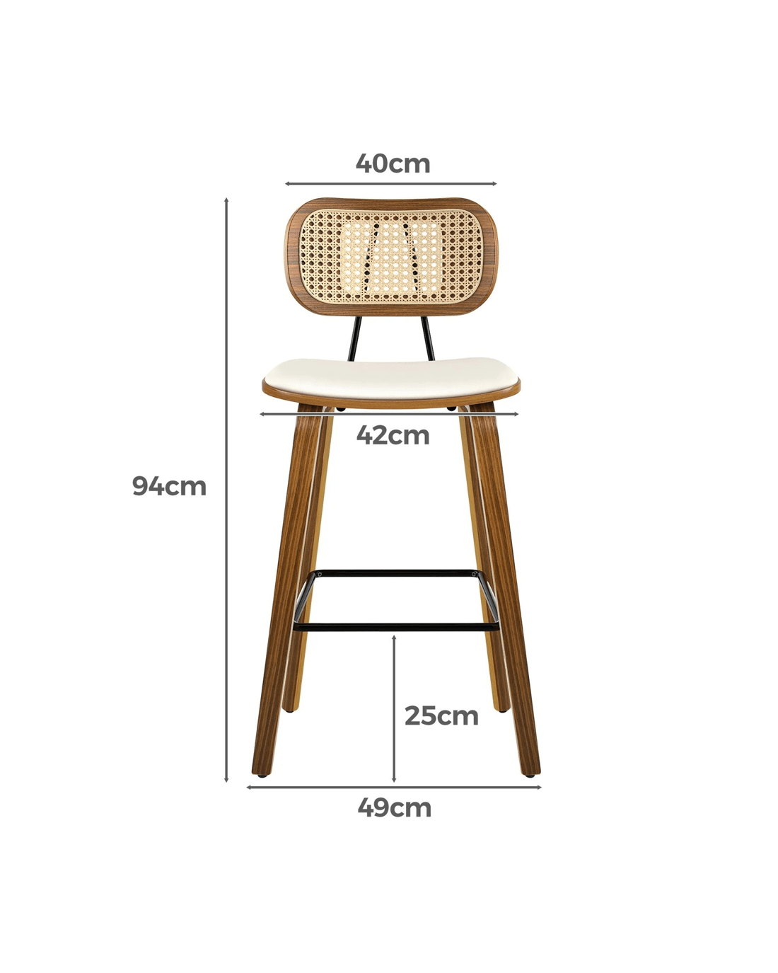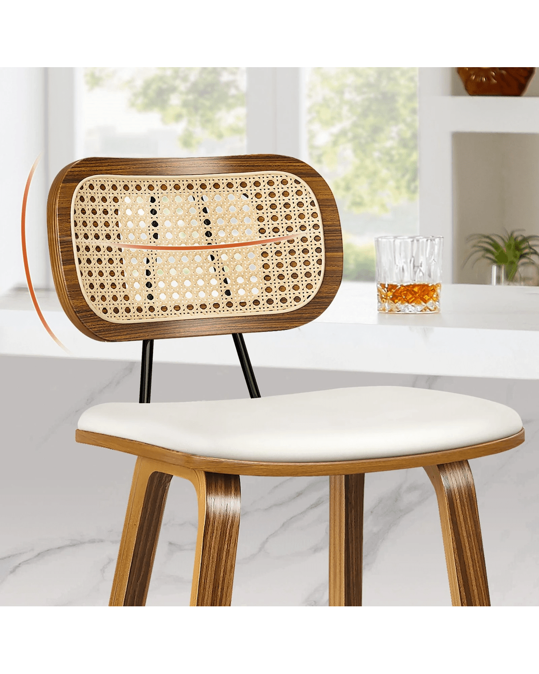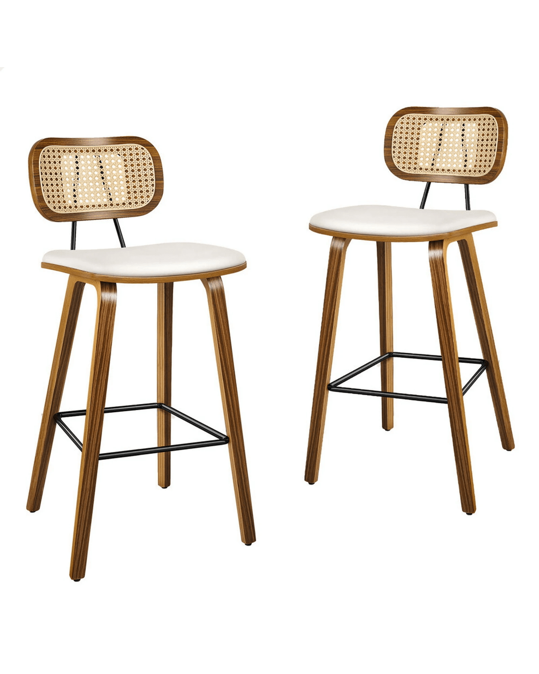 Featuring a stylish and comfortable rattan backrest, this barstool adds both elegance and support. Perfect for those who desire a chic look without sacrificing comfort, this Bar Stool - ideal choice for enhancing your dining or entertaining space. Prop up your feet on the footrest as you enjoy brunch or a late-night snack. As always, we have no compromise on materials Use - th an extra layer of mesh, the rattan backrest is designed to be long-lasting durability. It also features adjustable leveler on all legs to provide stability on uneven surfaces.