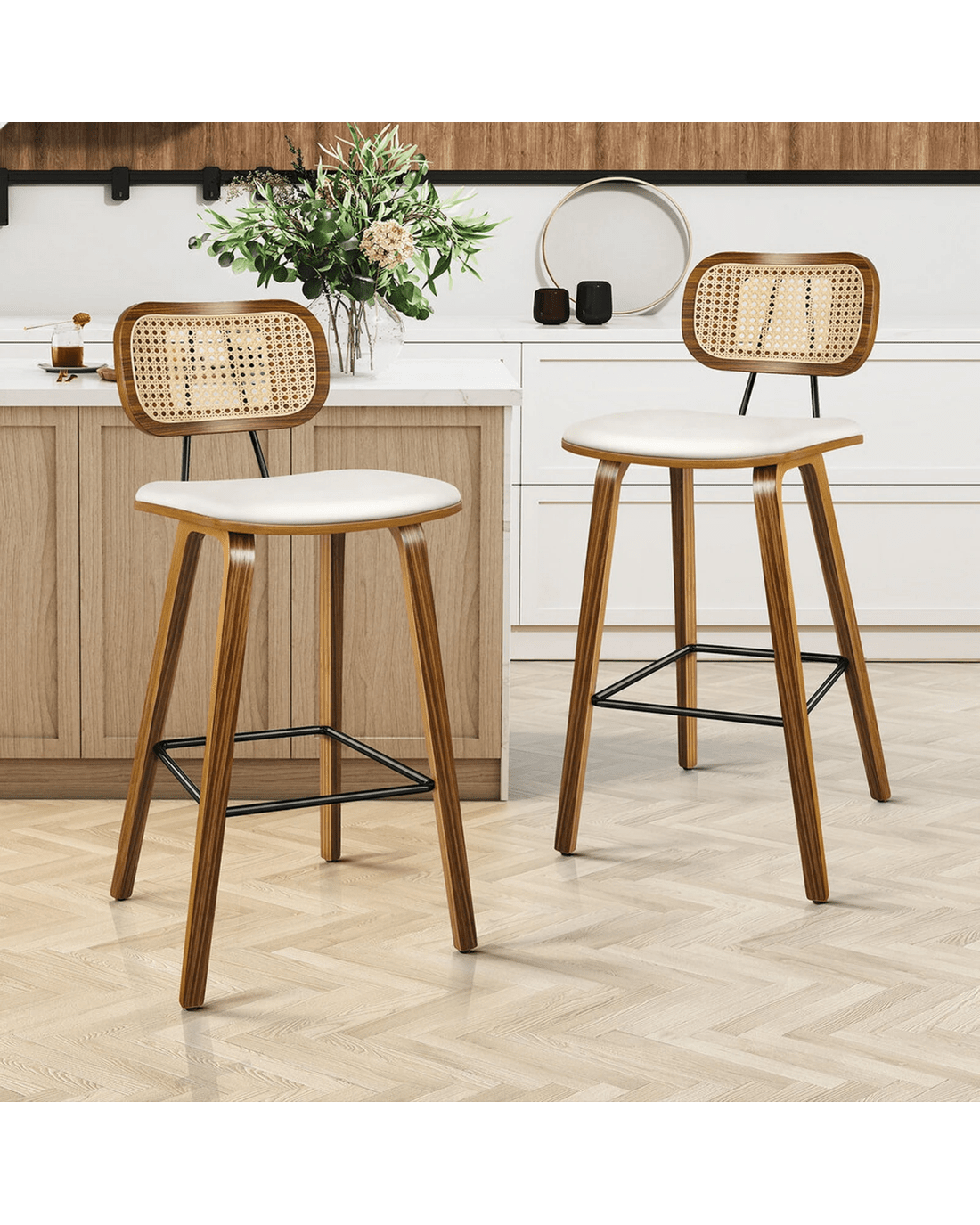 Perfectly tailored from rattan and durable wooden legs, these stools embody stunning Bohemian and Scandinavian style and give a unique touch to the kitchen island and bar counter. Blending seamlessly with your existing decor, they bring a perfect amount of stylish function and carefree aesthetics to your home.
